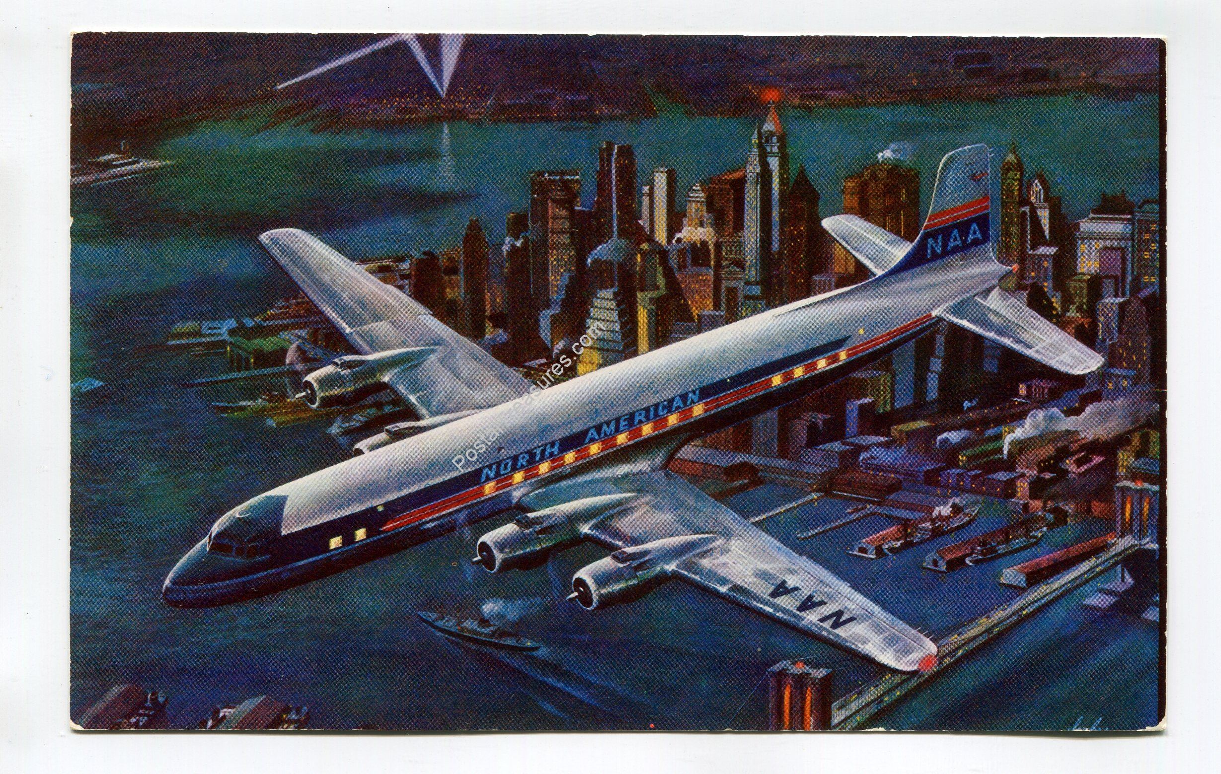 North American Airlines Luxurious 4-Engine Douglas Skymasters postcard