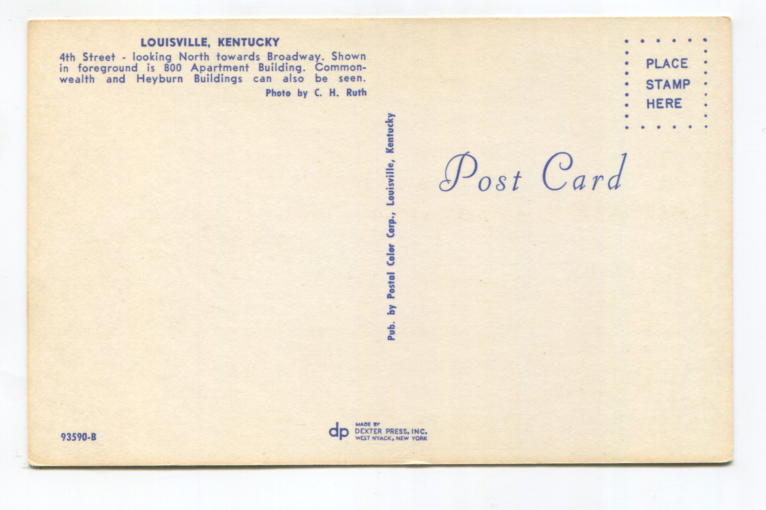 4th Street looking North towards Broadway Louisville Kentucky postcard