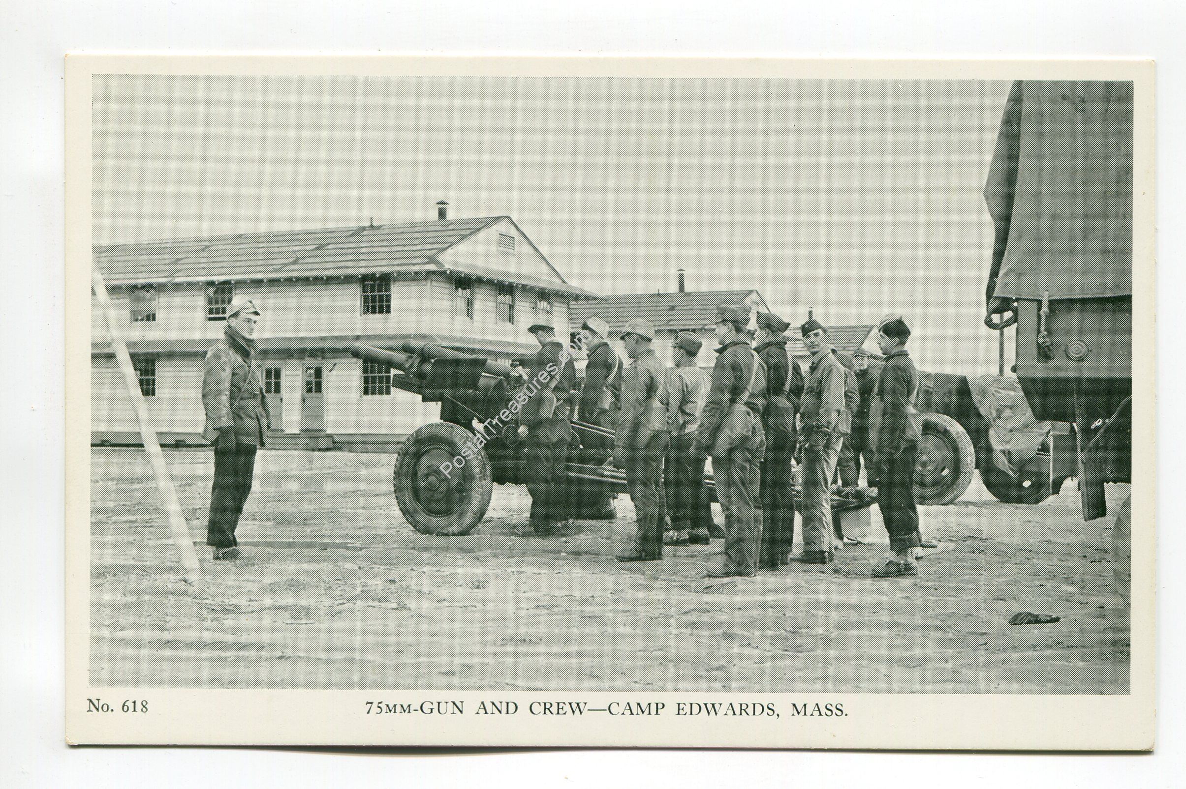75mm Gun and Crew Camp Edwards Massachusetts postcard