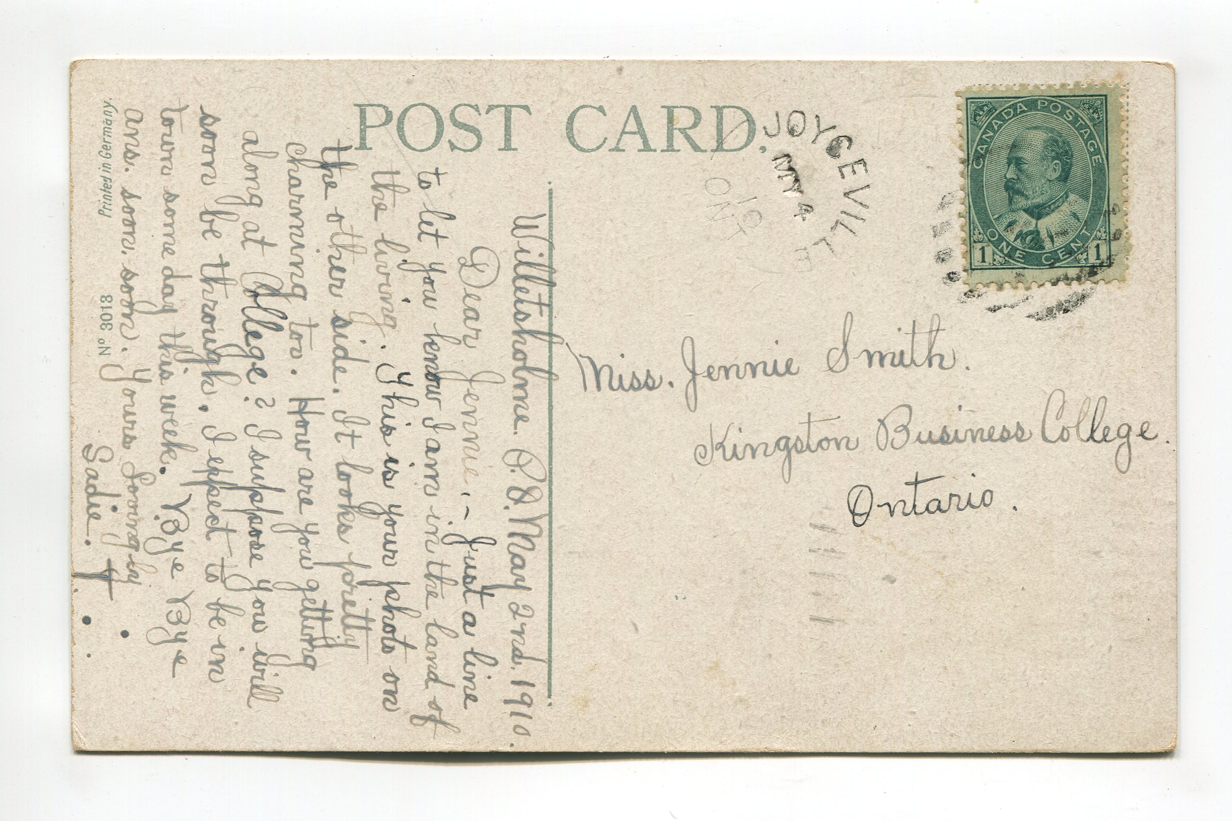Condition – noticeable corner/edge wear, crease in corners, heavy cancellation impressions and marks visible on card front, soiling/marks