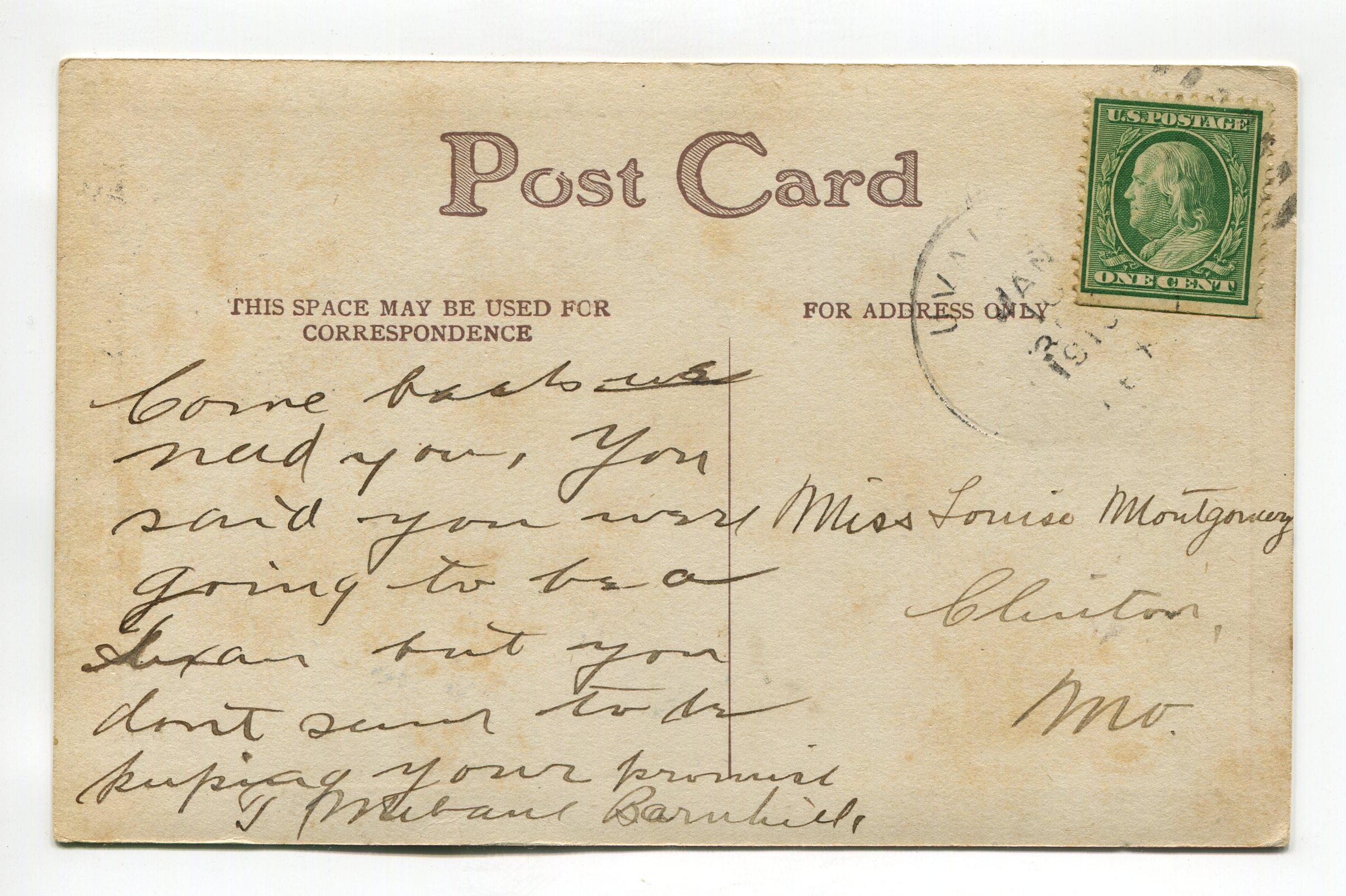 Condition – noticeable corner/edge wear, cancellation impression visible on card front, marks on card front, soiling/marks