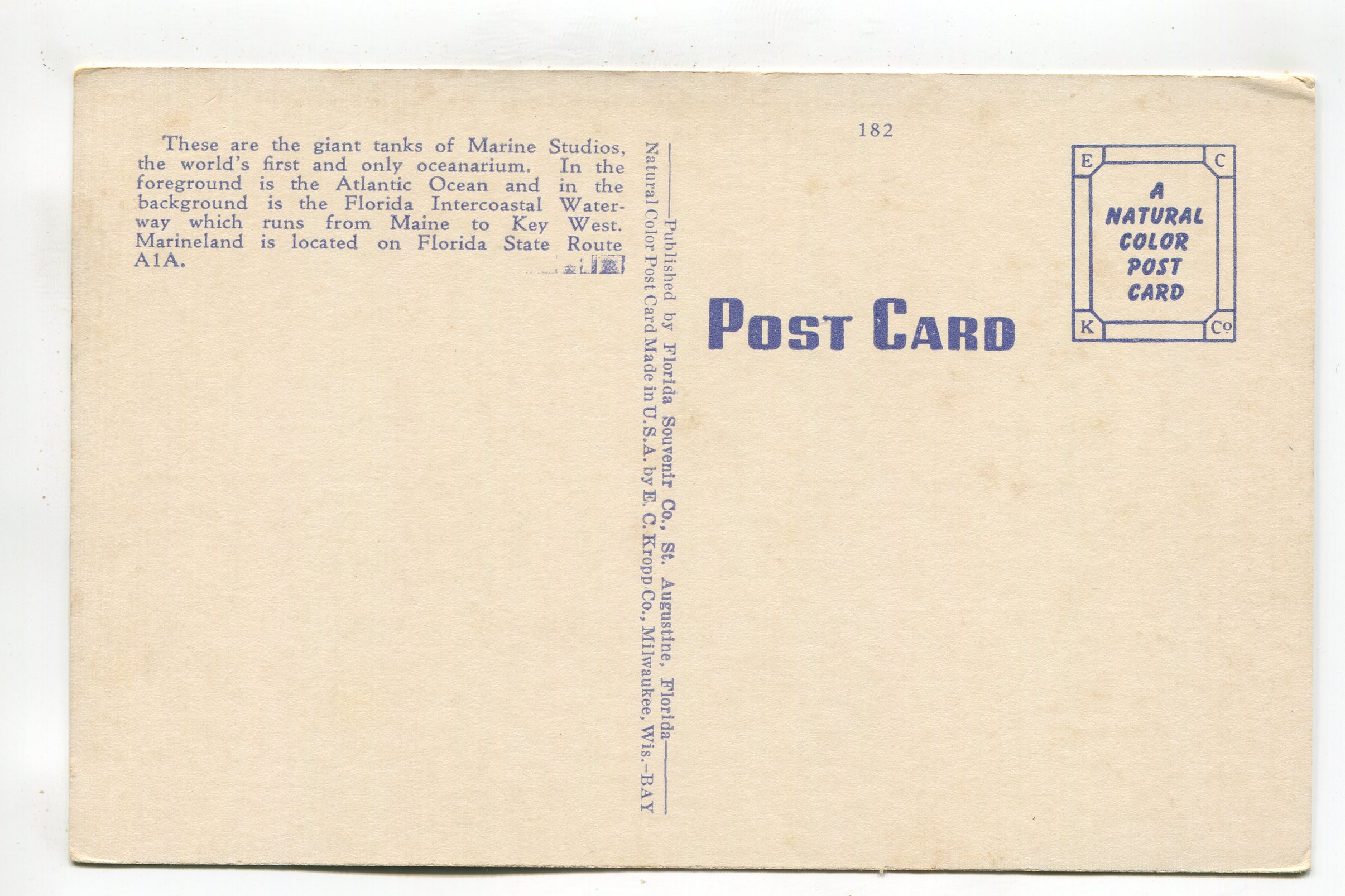 Air view of Marineland Florida postcard