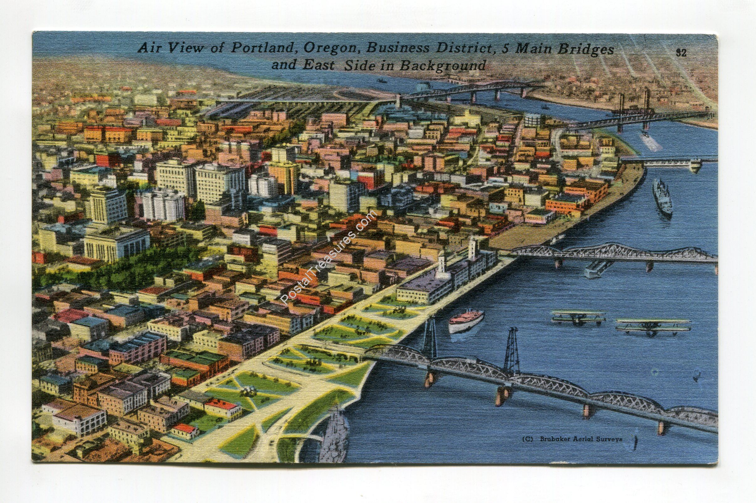Air View of Portland Oregon Business District 5 Main Bridges and East Side in Background postcard