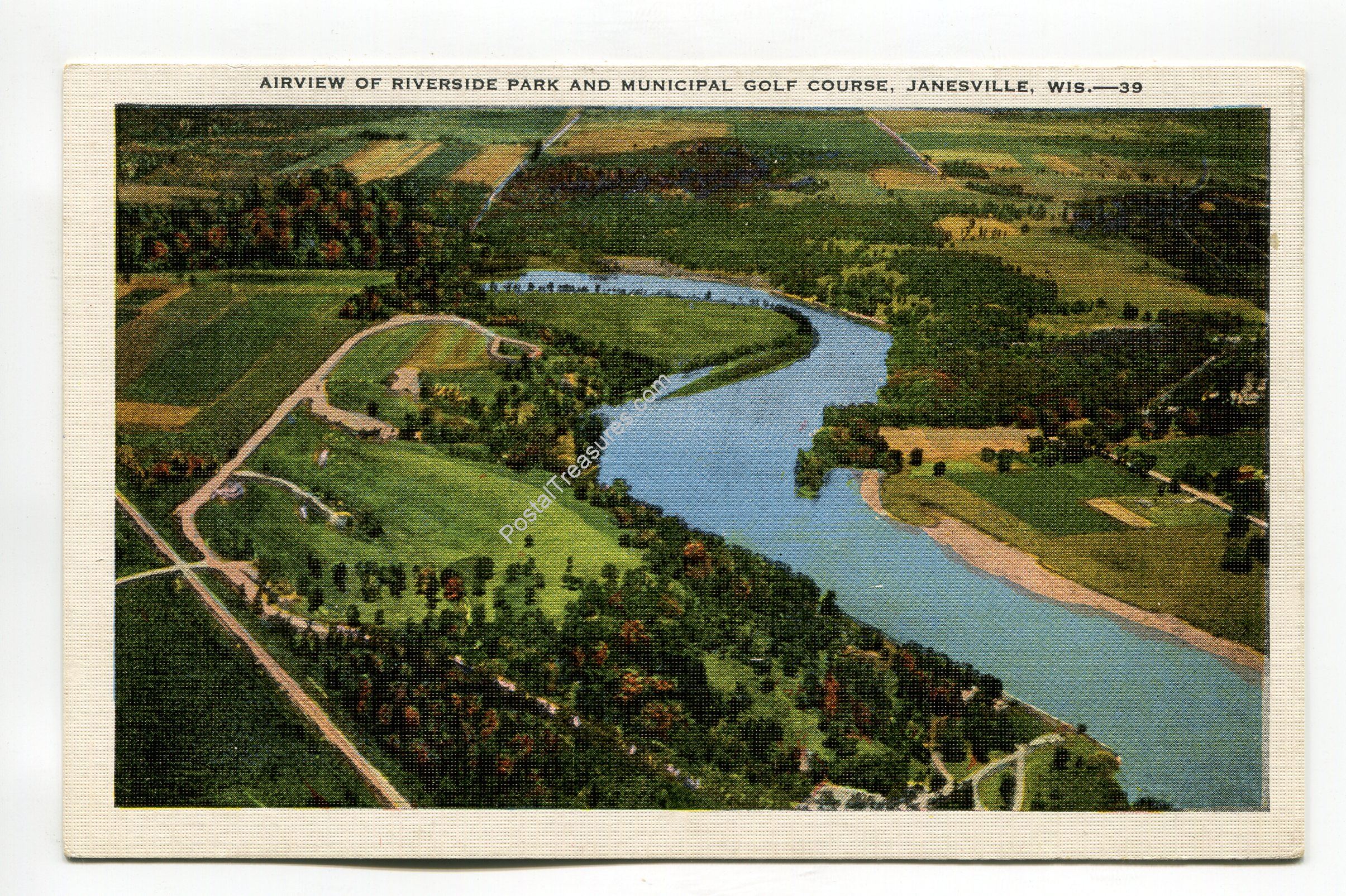Airview of Riverside Park and Municipal Golf Course Janesville Wisconsin postcard
