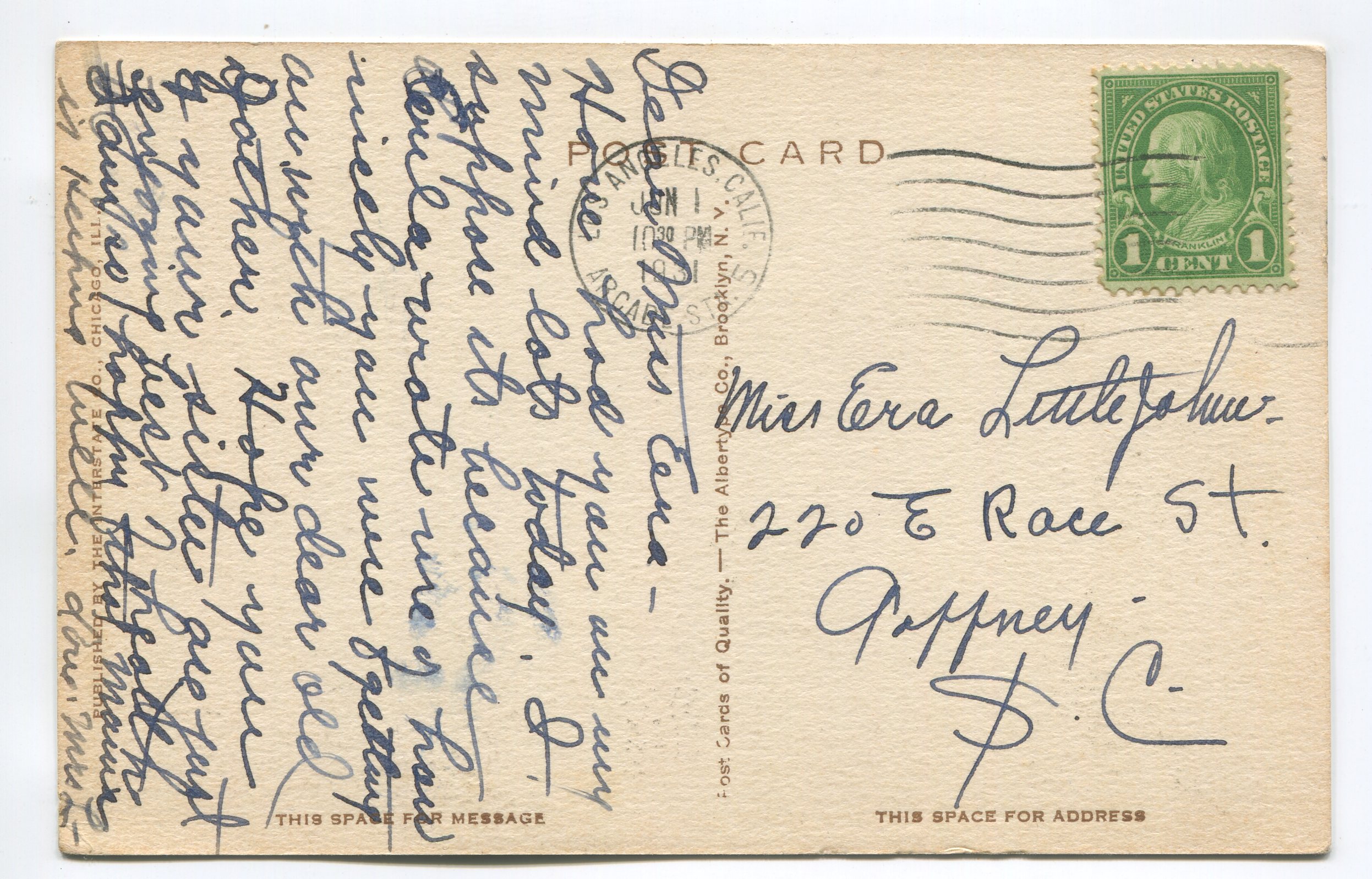 Condition – noticeable corner/edge wear, crease in corners, marks on card front, cancellation impression/marks visible on card front, soiling/marks