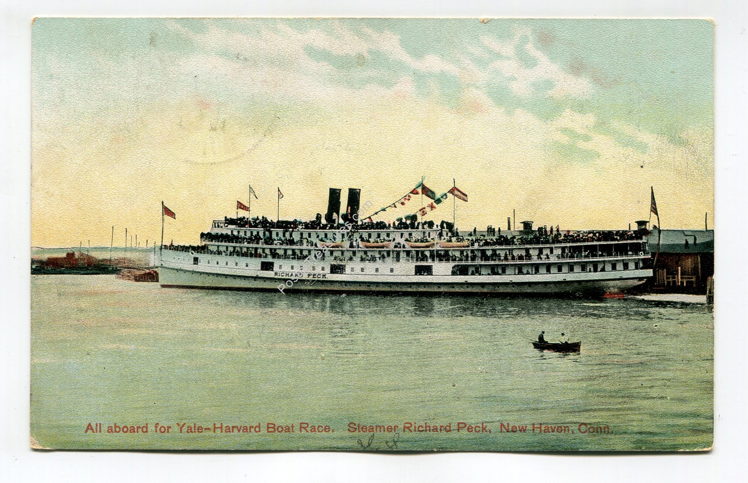 All aboard for Yale – Harvard Boat Race Steamer Richard Peck New Haven Connecticut postcard