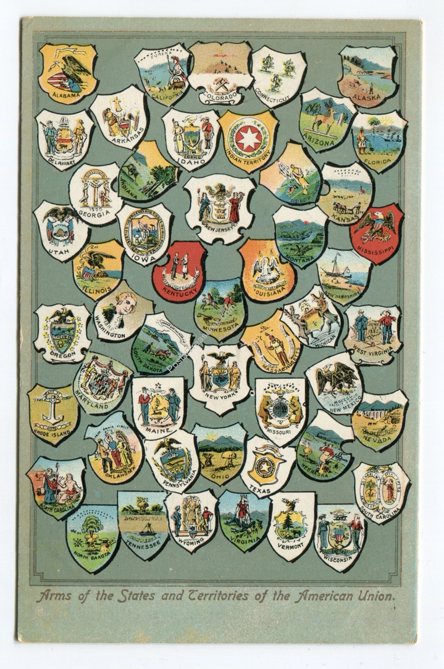 Arms of the States and Territories of the American Union postcard