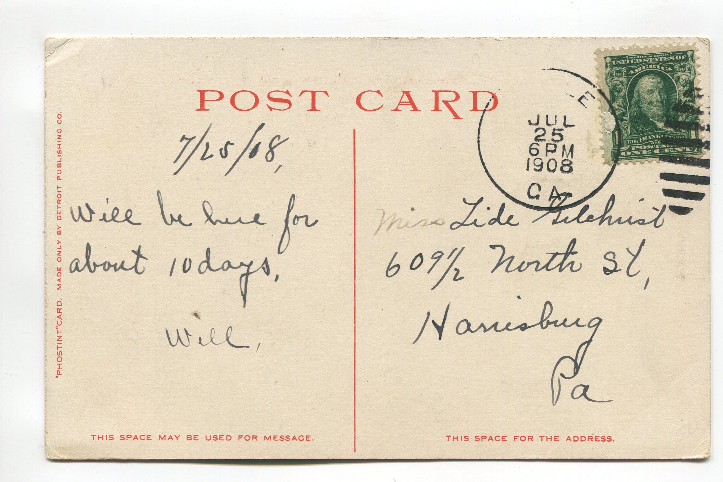 Condition – noticeable corner/edge wear, crease in corners, cancellation impression/marks visible on card front, album impression marks around corners, writing on card front, soiling/marks