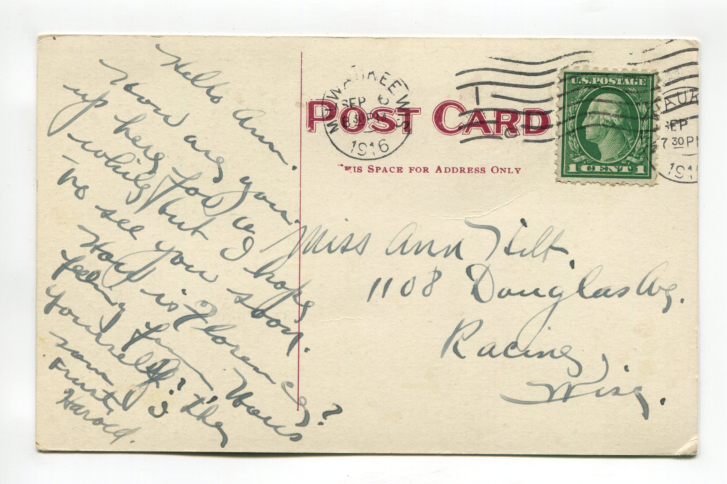 Condition – noticeable corner/edge wear, crease in corners and upper right of card center, marks on card front, cancellation mark on front, soiling/marks
