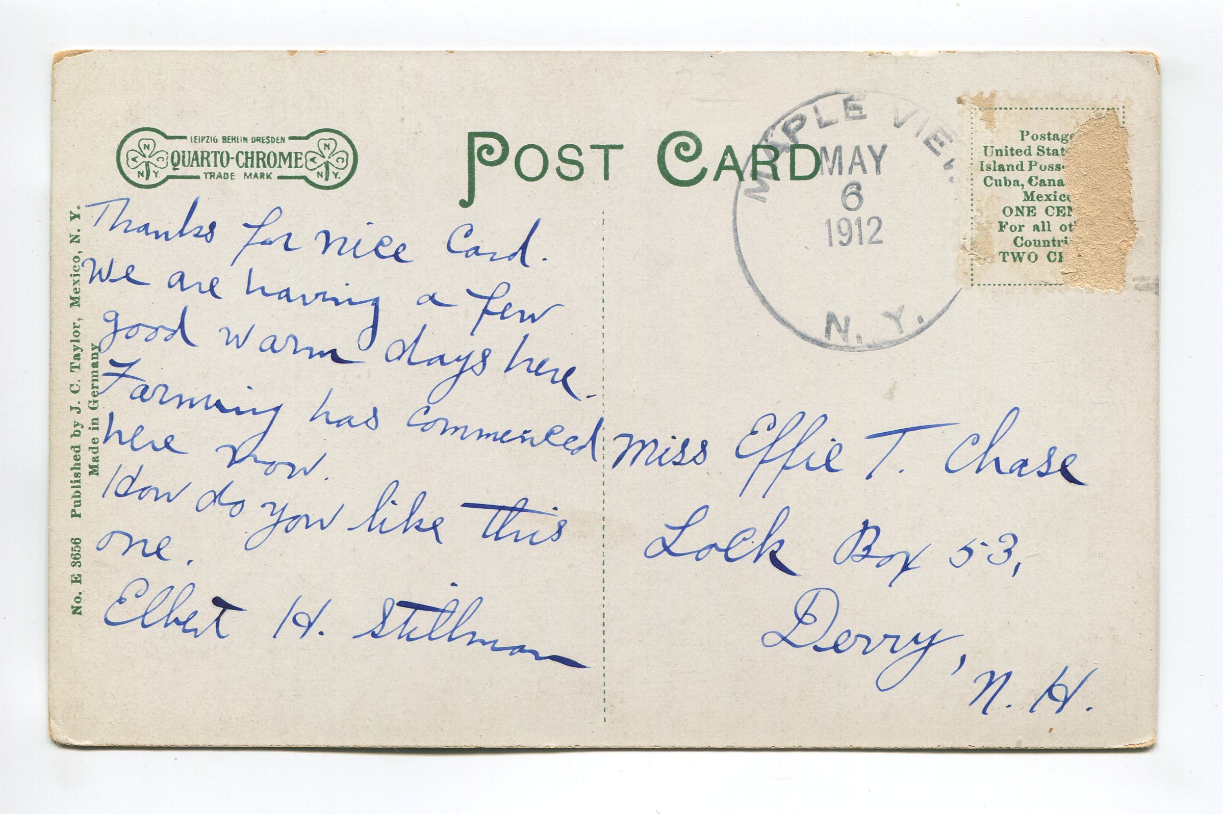 Condition – noticeable corner/edge wear, crease in corners, stamp missing with damage, marks on card front, soiling/marks