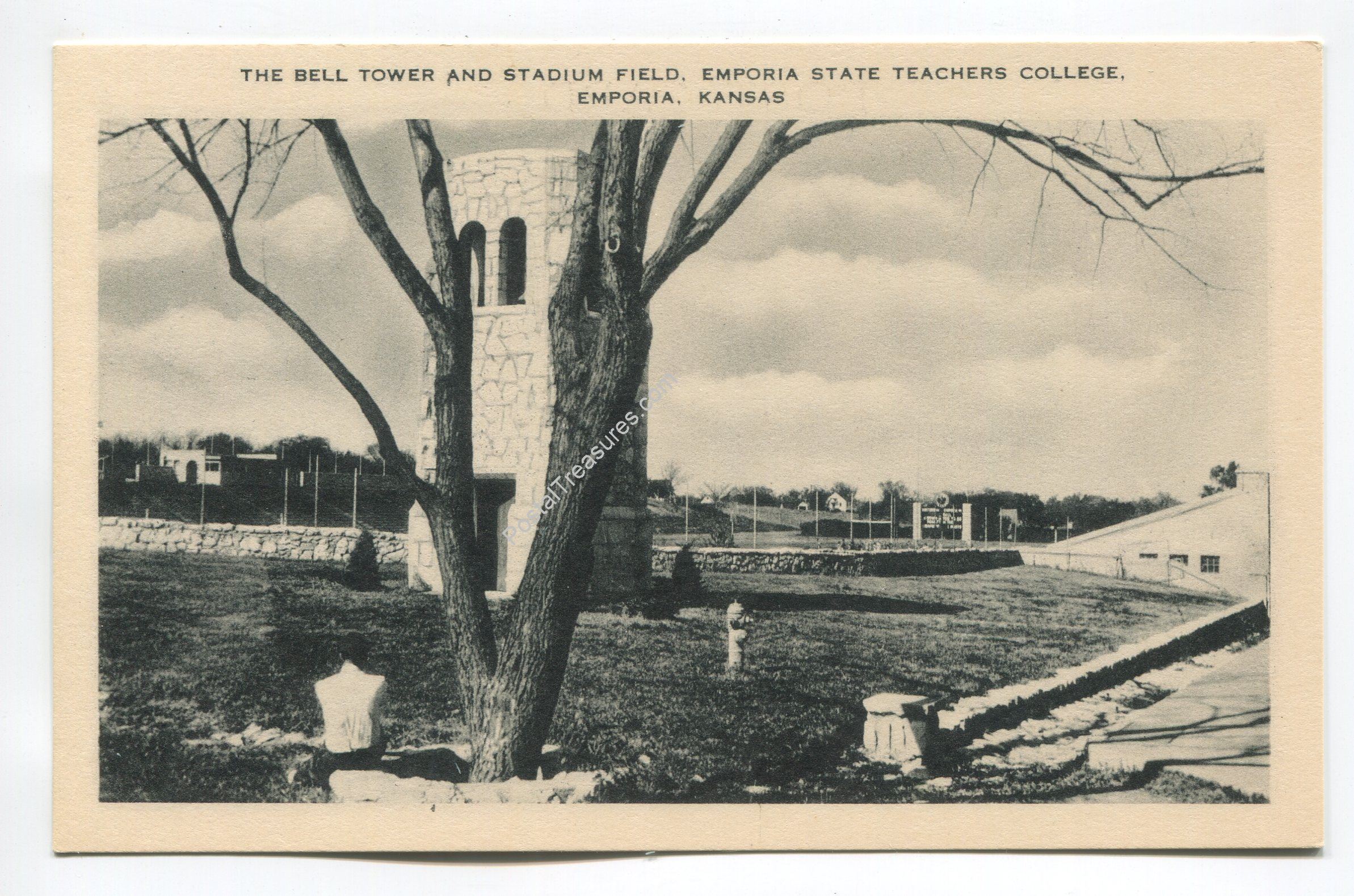 Bell Tower and Stadium Field Emporia State Teachers College Emporia Kansas postcard