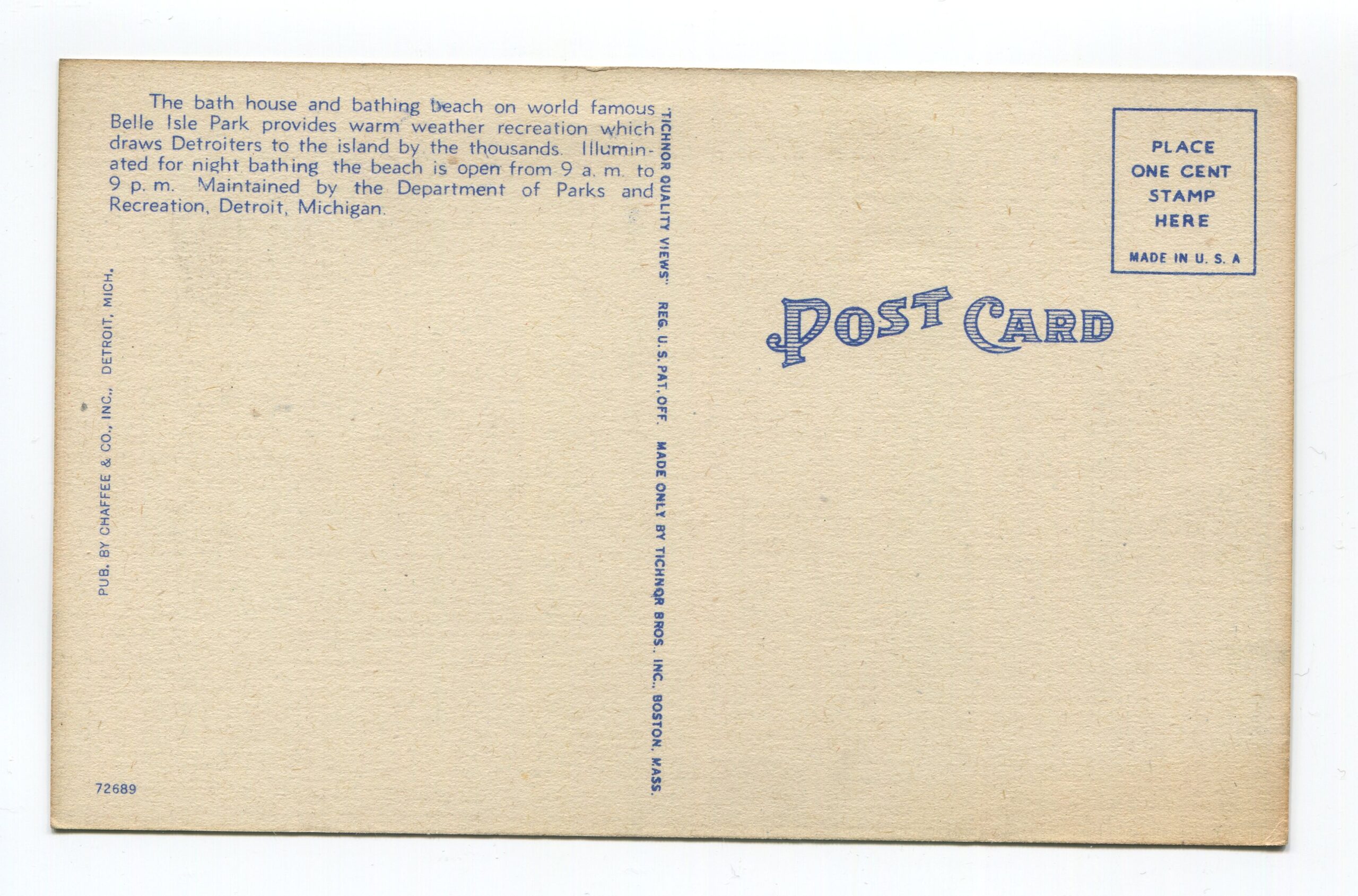 Belle Isle Bathing Beach and Bath House Detroit Michigan postcard
