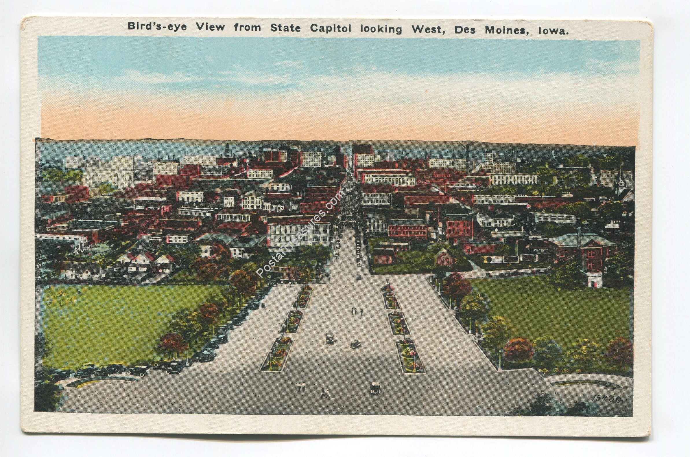 Birds-eye View from State Capitol looking West Des Moines Iowa postcard