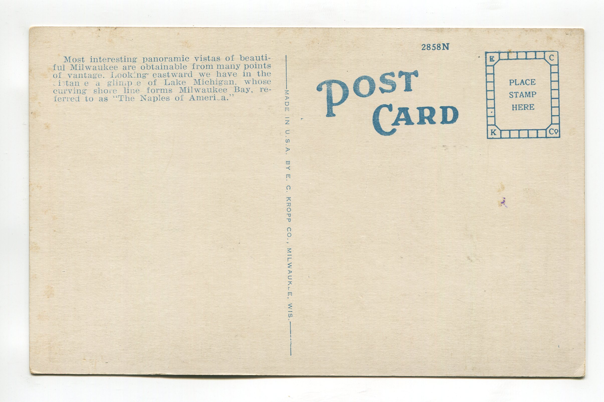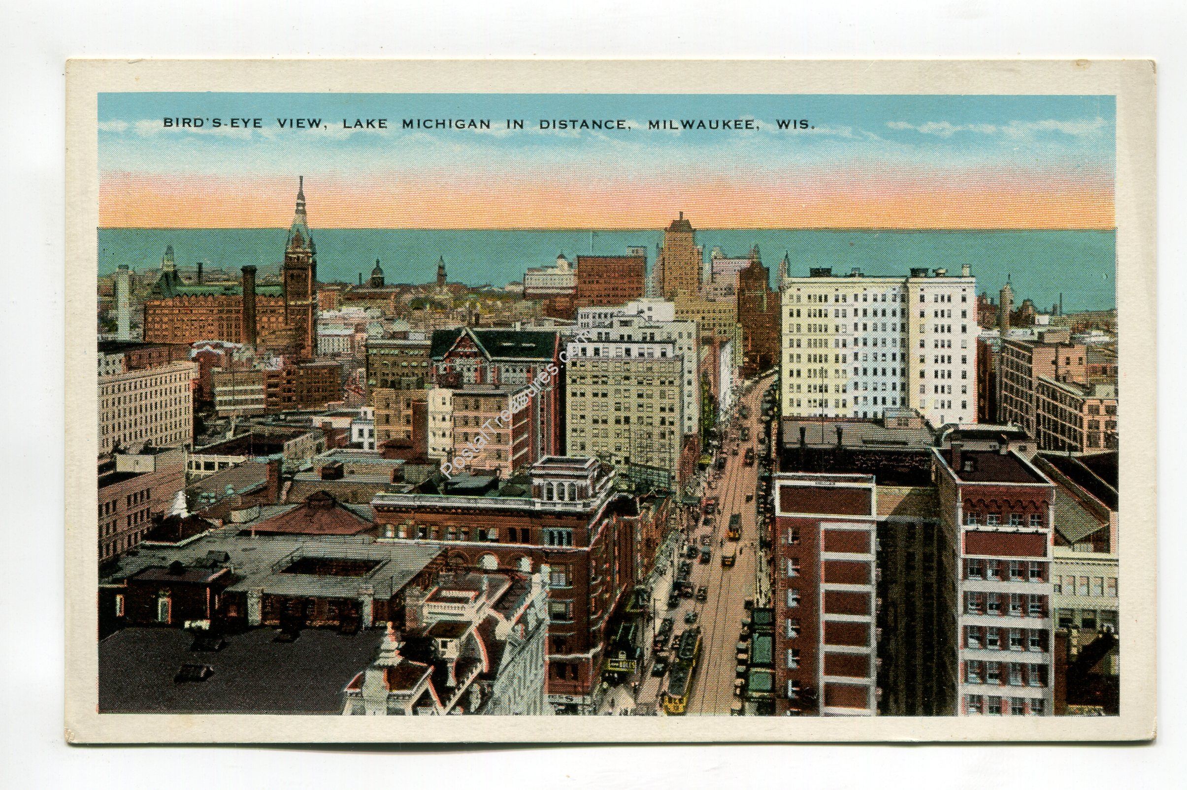 Bird’s-eye view Lake Michigan in distance Milwaukee Wisconsin postcard