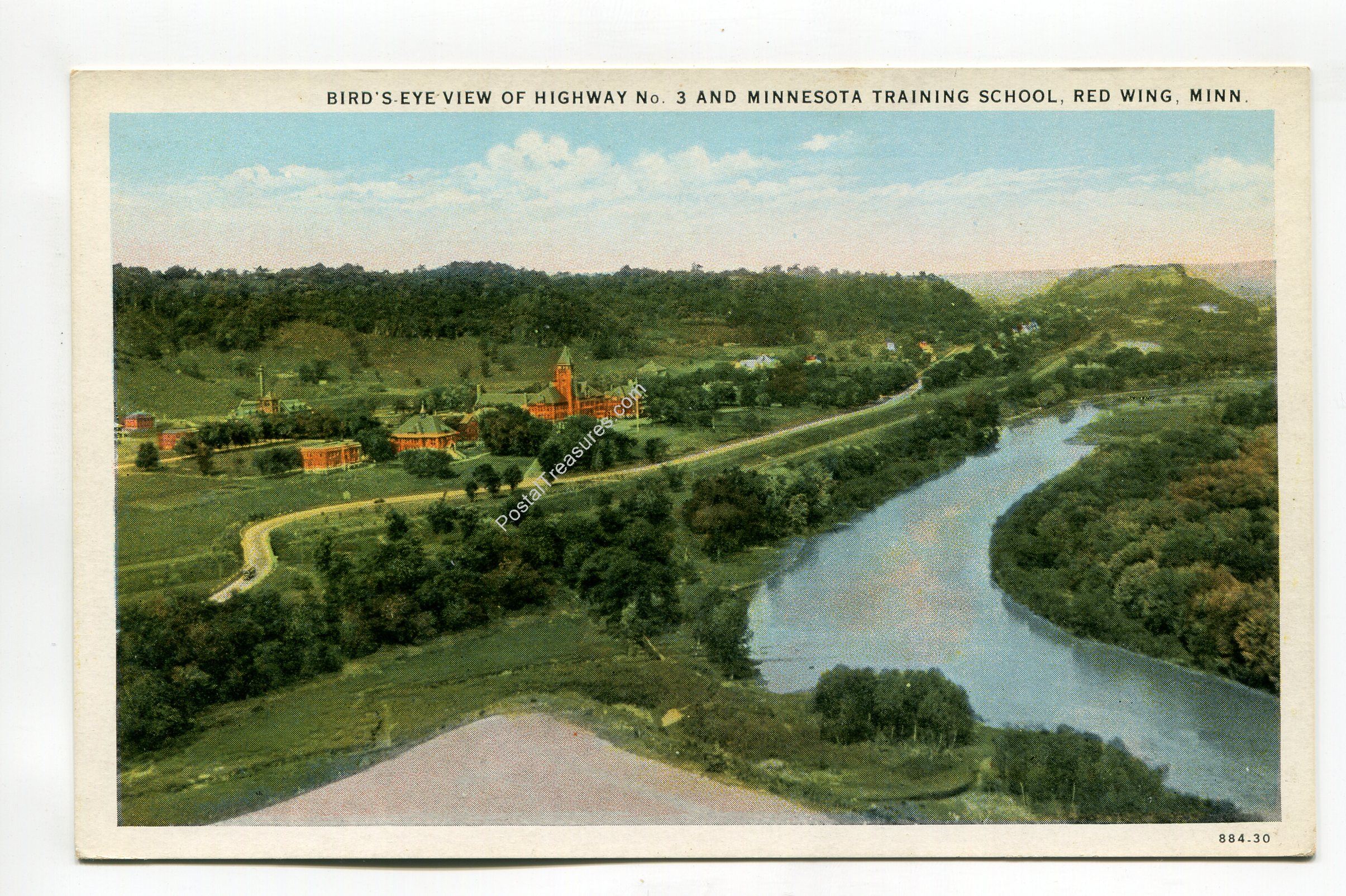 Bird’s Eye view of Highway No 3 and Minnesota Training School Red Wing Minnesota postcard