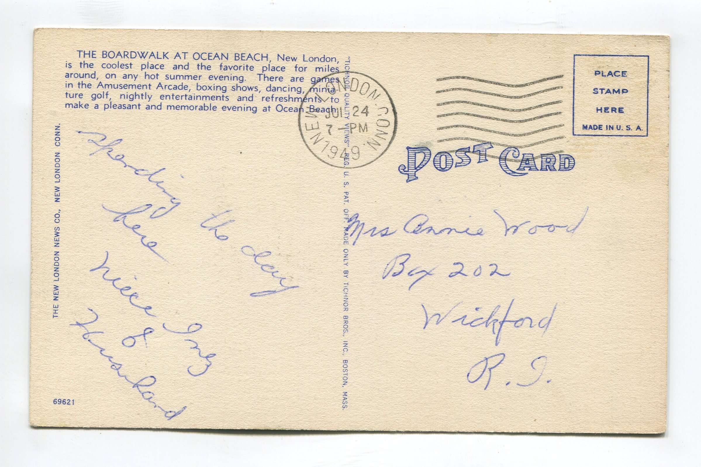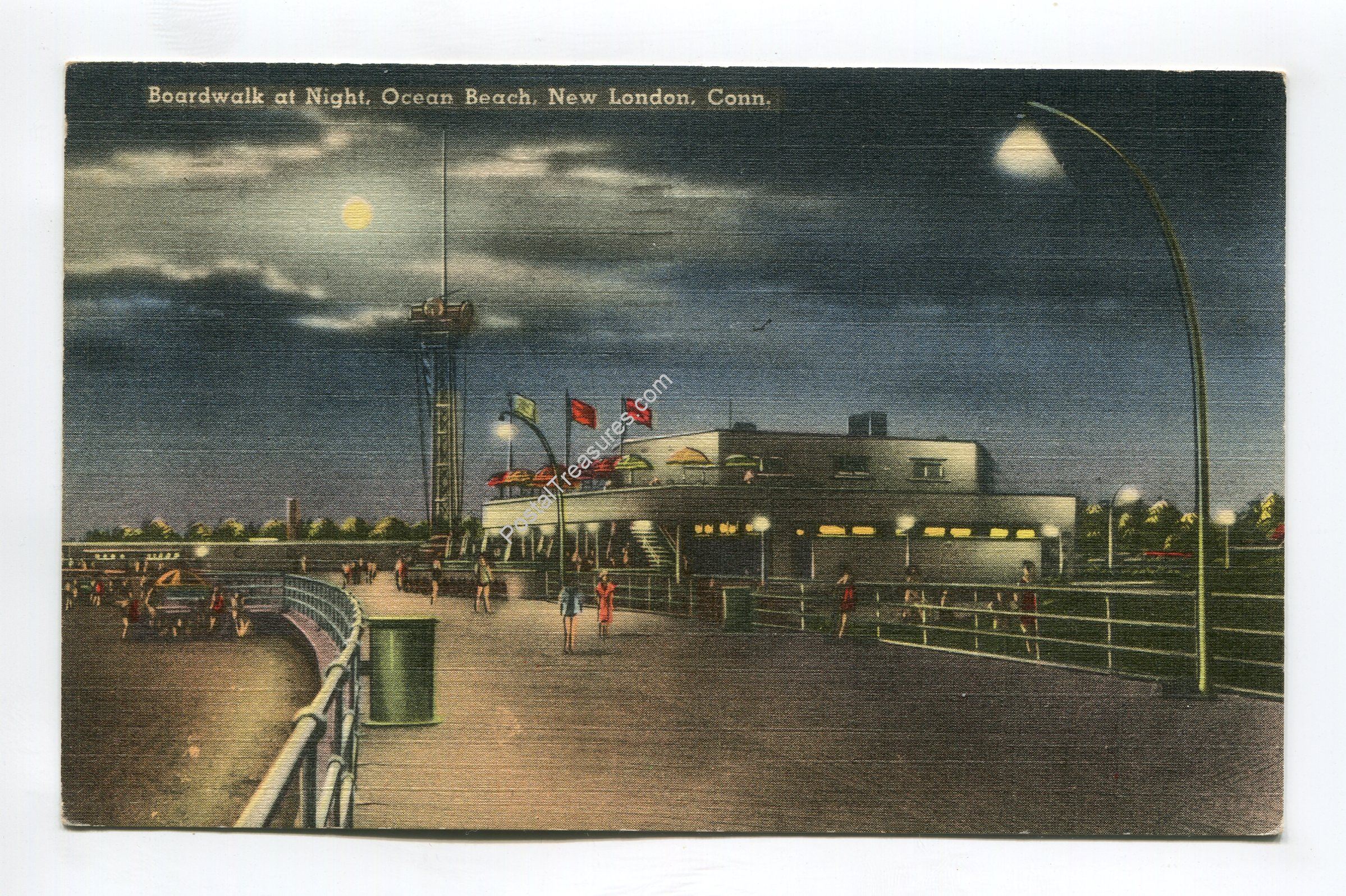 Boardwalk at Night Ocean Beach New London Connecticut postcard