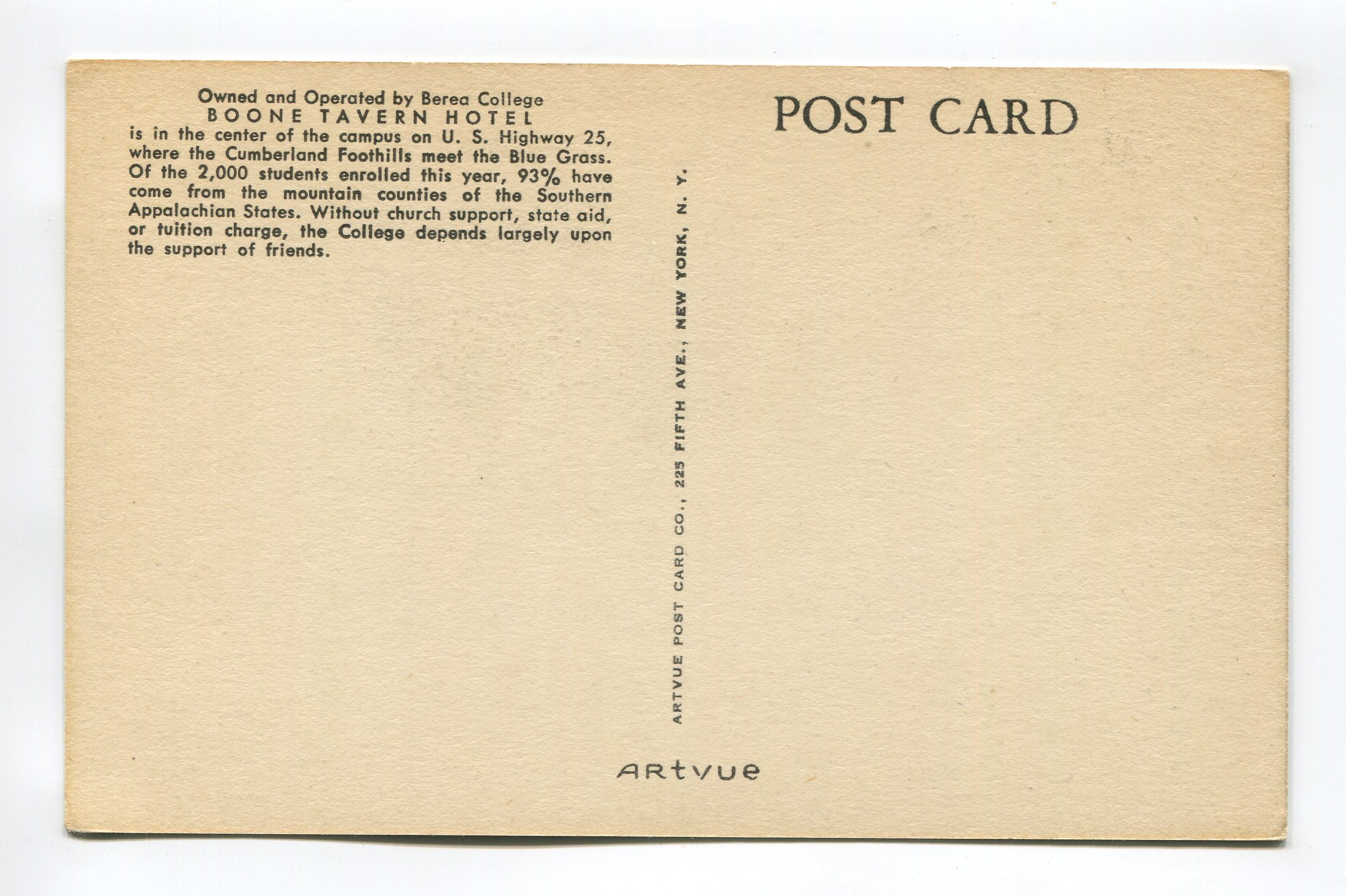 Boone Tavern Hotel of Berea College Berea Kentucky postcard