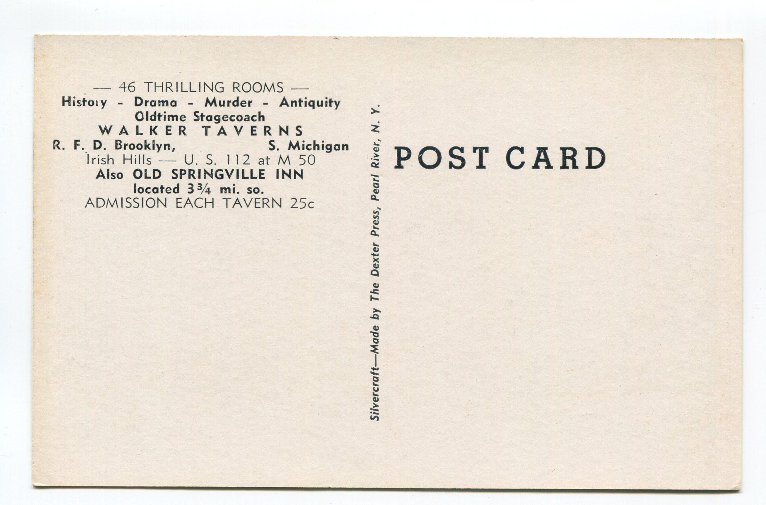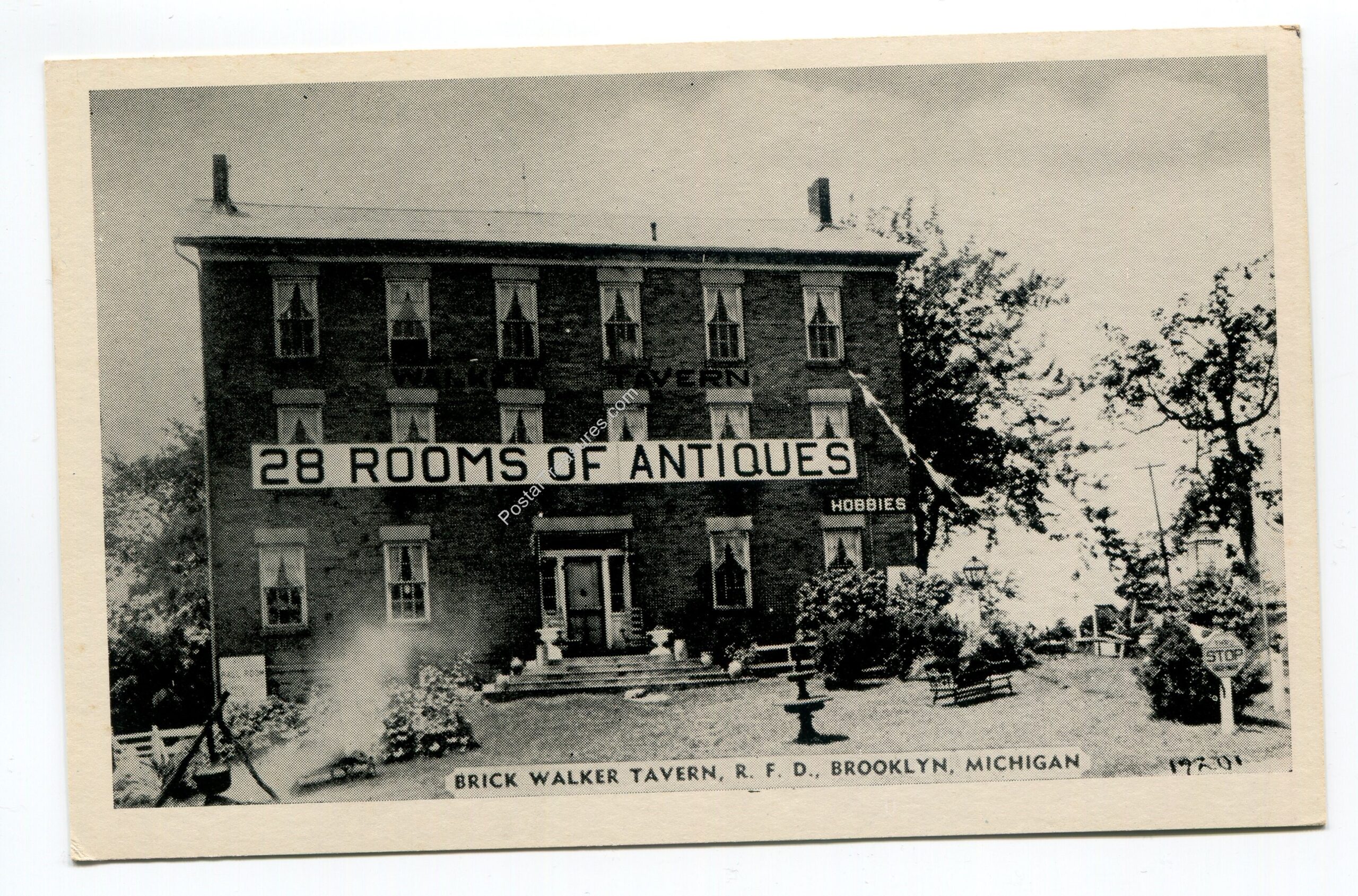 Brick Walker Tavern R F D Brooklyn Michigan postcard