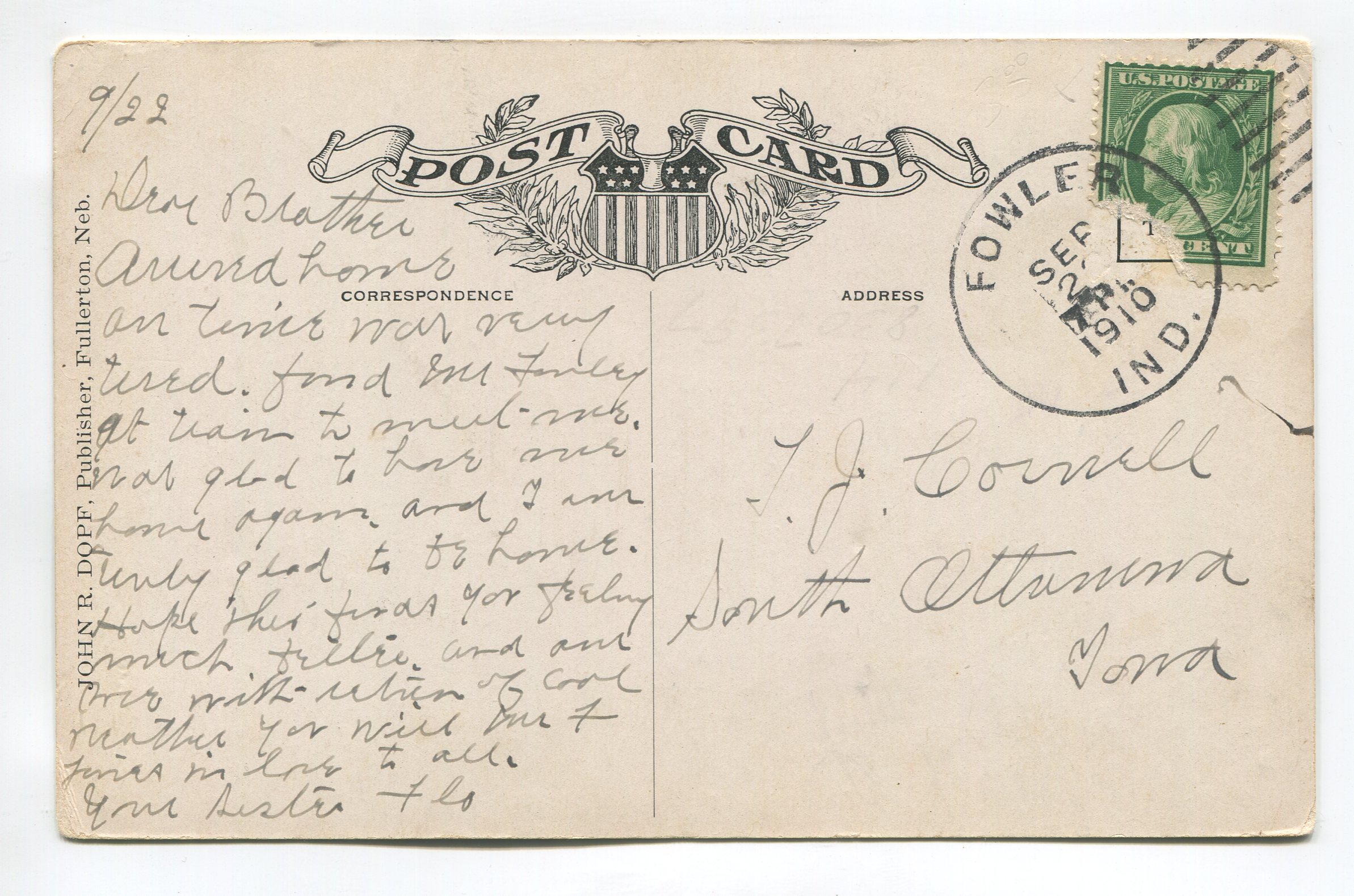 Condition – noticeable corner/edge wear, crease in corners, damage marks near lower right corner, cancellation impression visible on card front, soiling/marks