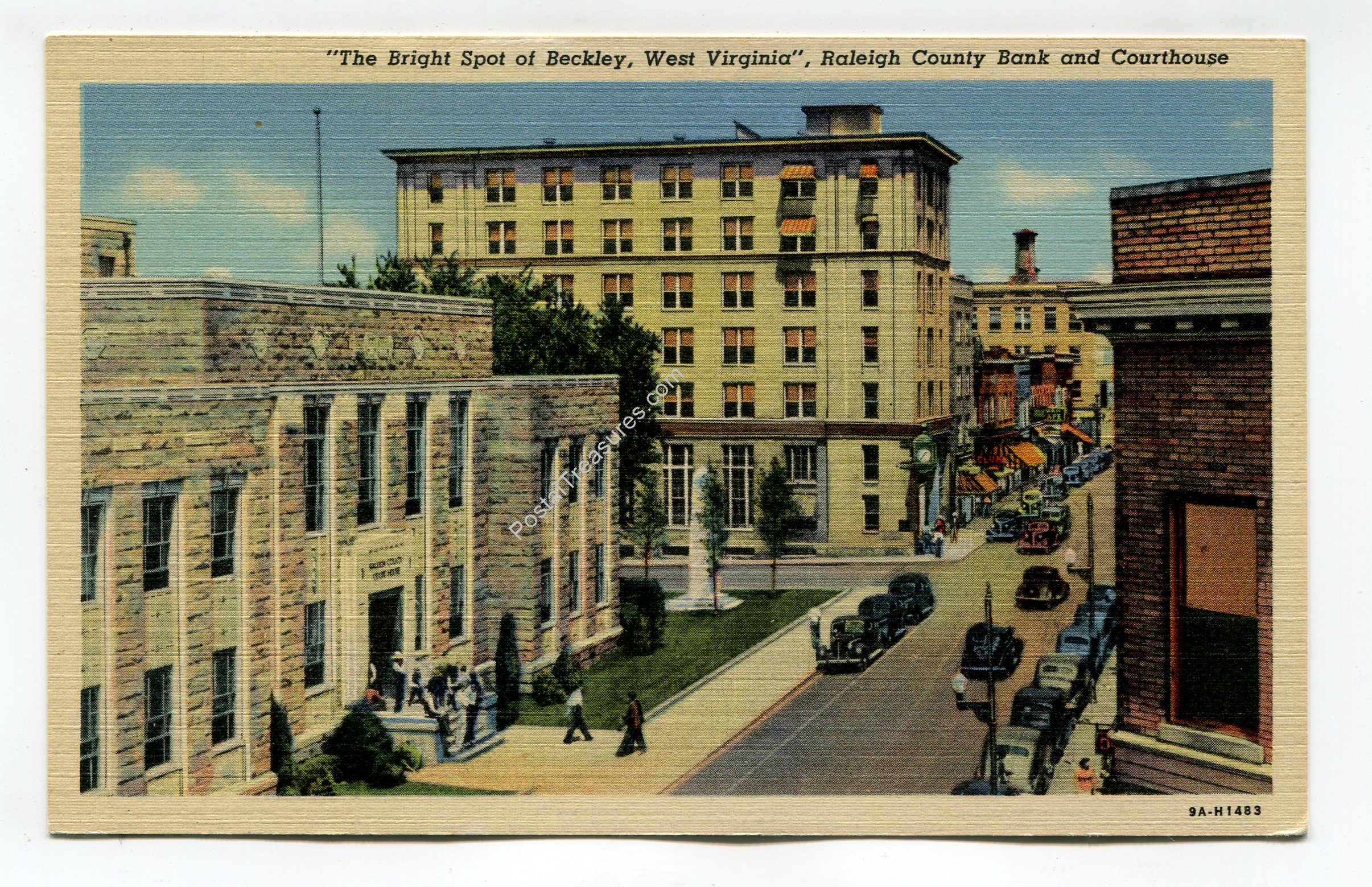 Bright Spot of Beckley West Virginia Raleigh County Bank and Courthouse postcard