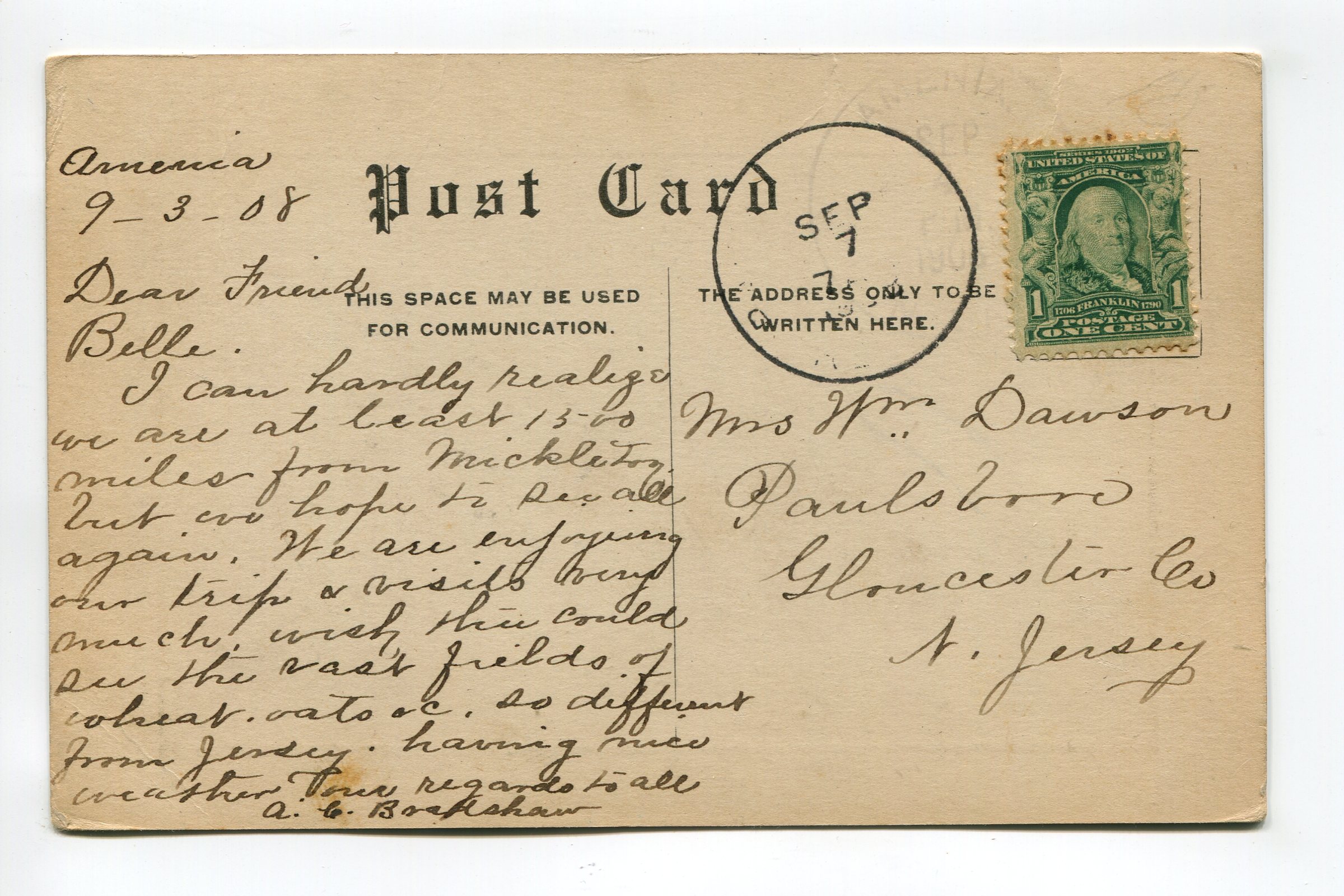 Condition – noticeable corner/edge wear, crease in corners, creases all along top edge, cancellation impression visible on card front, marks on card front, soiling/marks