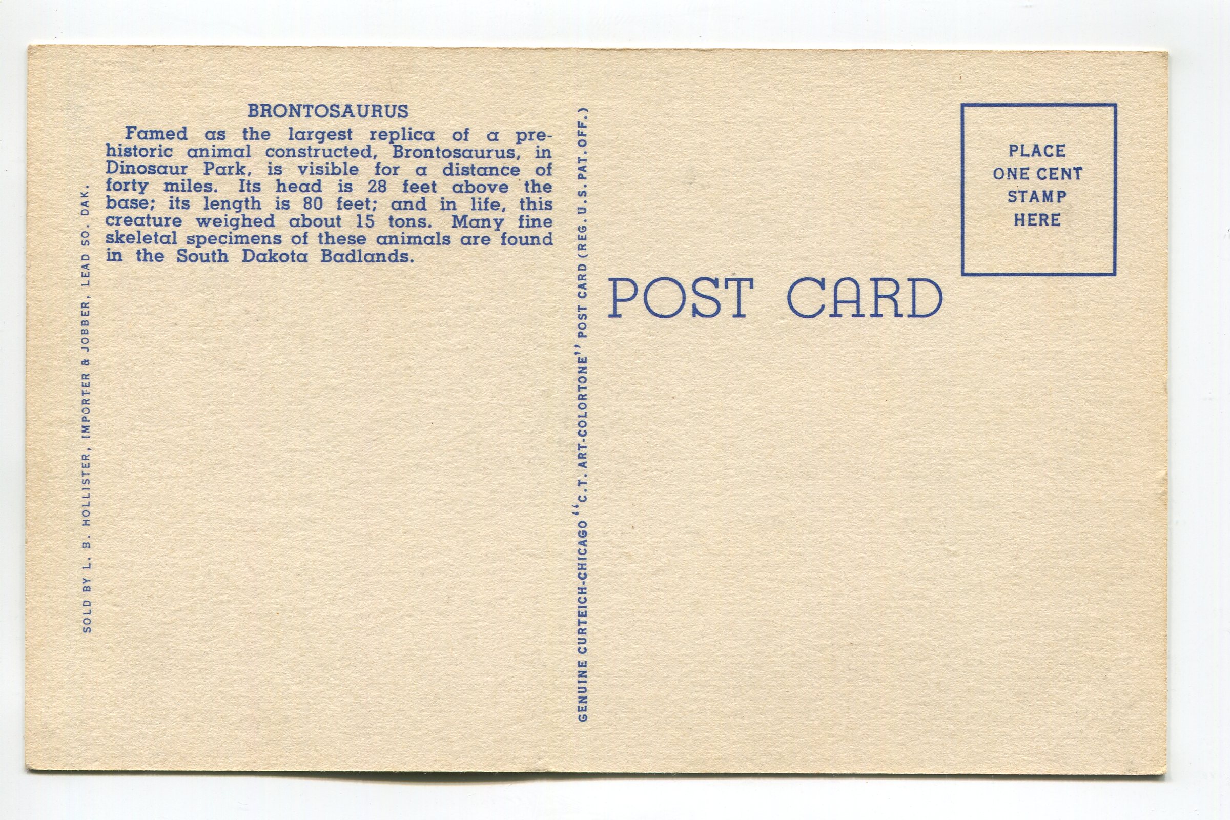 Brontosaurus Dinosaur Park Rapid City South Dakota postcard