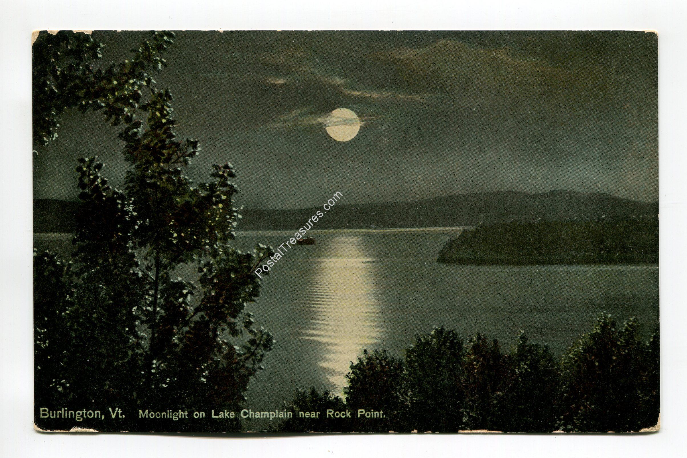 Moonlight on Lake Champlain near Rock Point Burlington Vermont postcard