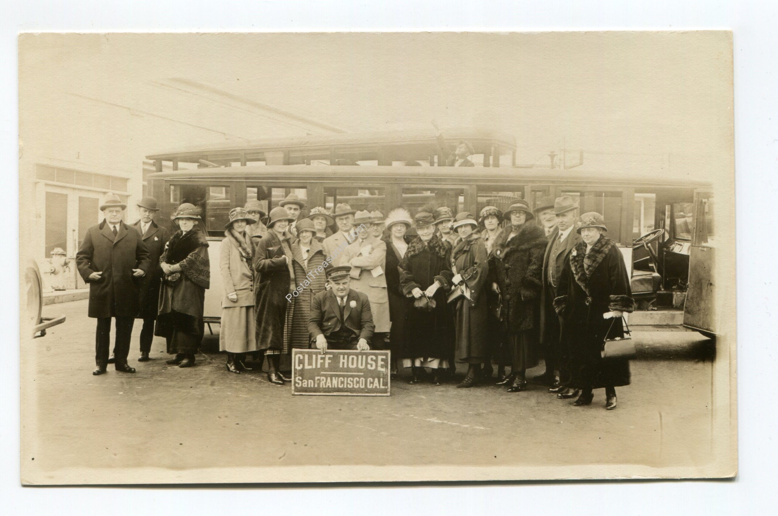 Bus with Passengers and Driver Sign Cliff House San Francisco California postcard