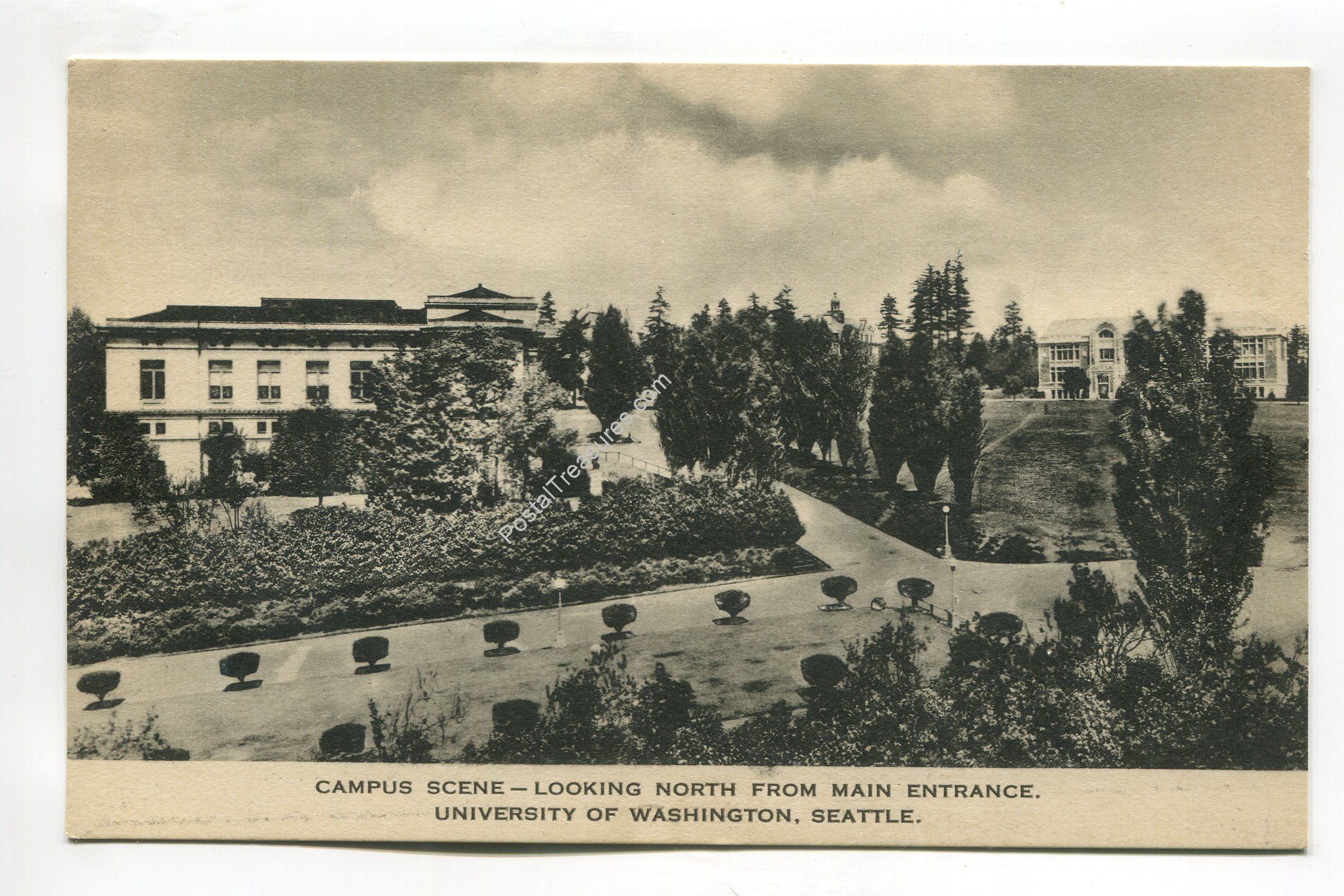 Campus Scene – looking north from Main Entrance University of Washington Seattle postcard
