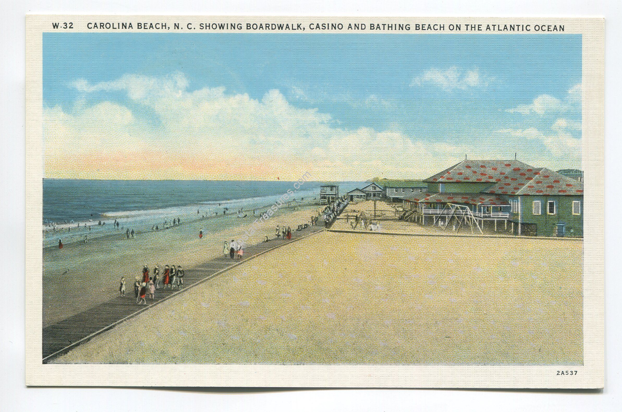 Carolina Beach North Carolina showing Boardwalk Casino and Bathing Beach on the Atlantic Ocean postcardUnused
