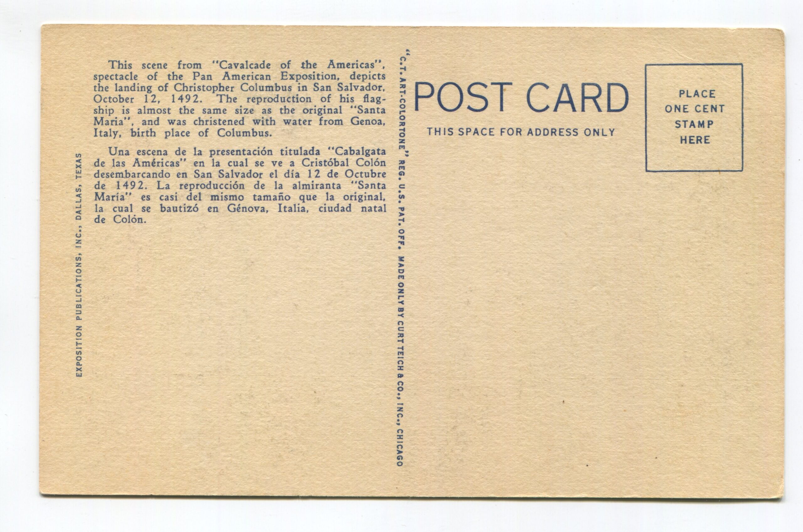 Cavalcade of the Americas Greater Texas and Pan American Exposition Dallas 1937 postcard