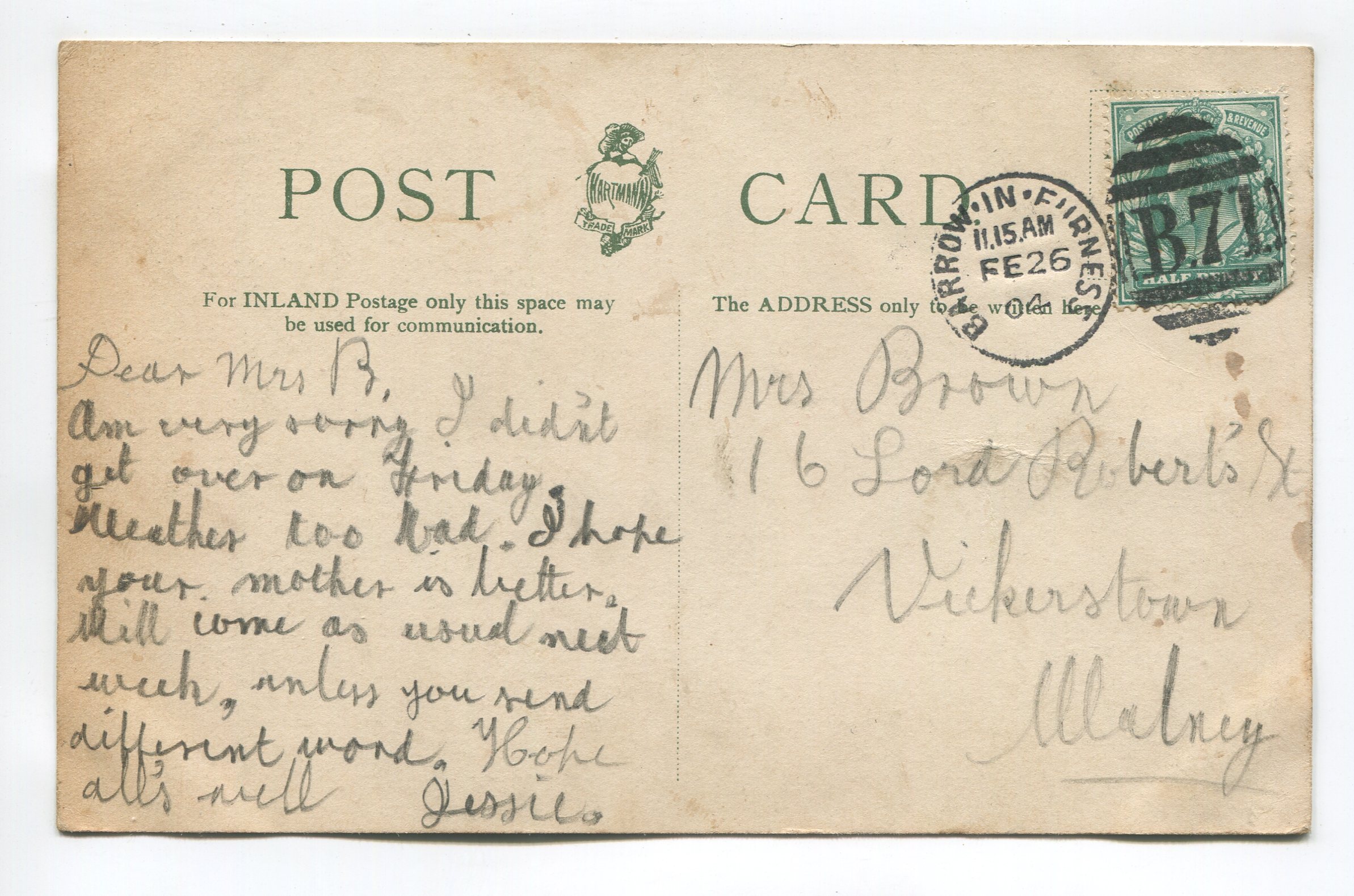 Condition – noticeable corner/edge wear, crease in corners and near center of left edge, creases lower left of card center, heavy cancellation impression and marks visible on card front, residue mark upper left of card center, album impression marks around corners, marks on card front, soiling/marks