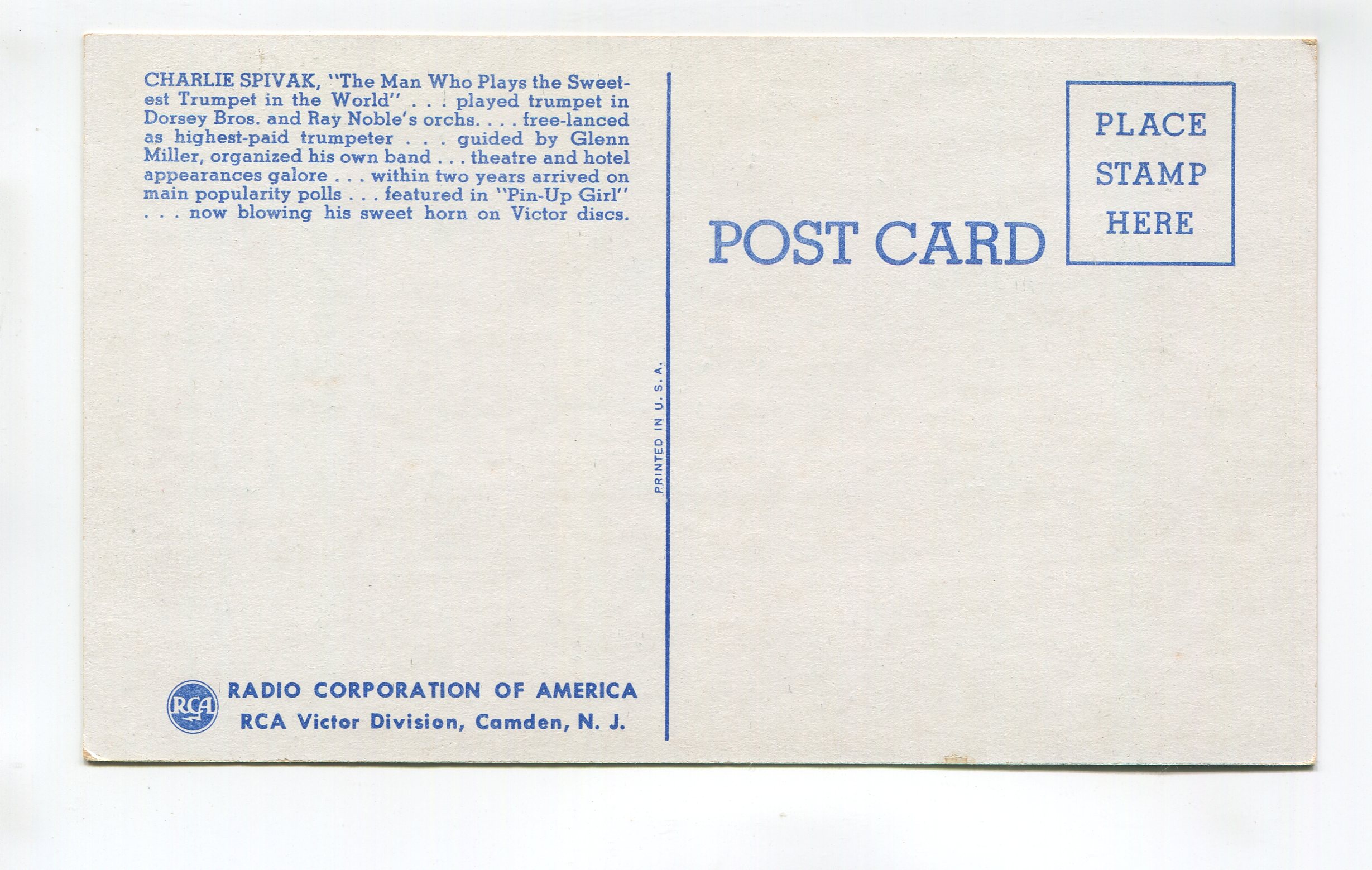 Charlie Spivak postcard