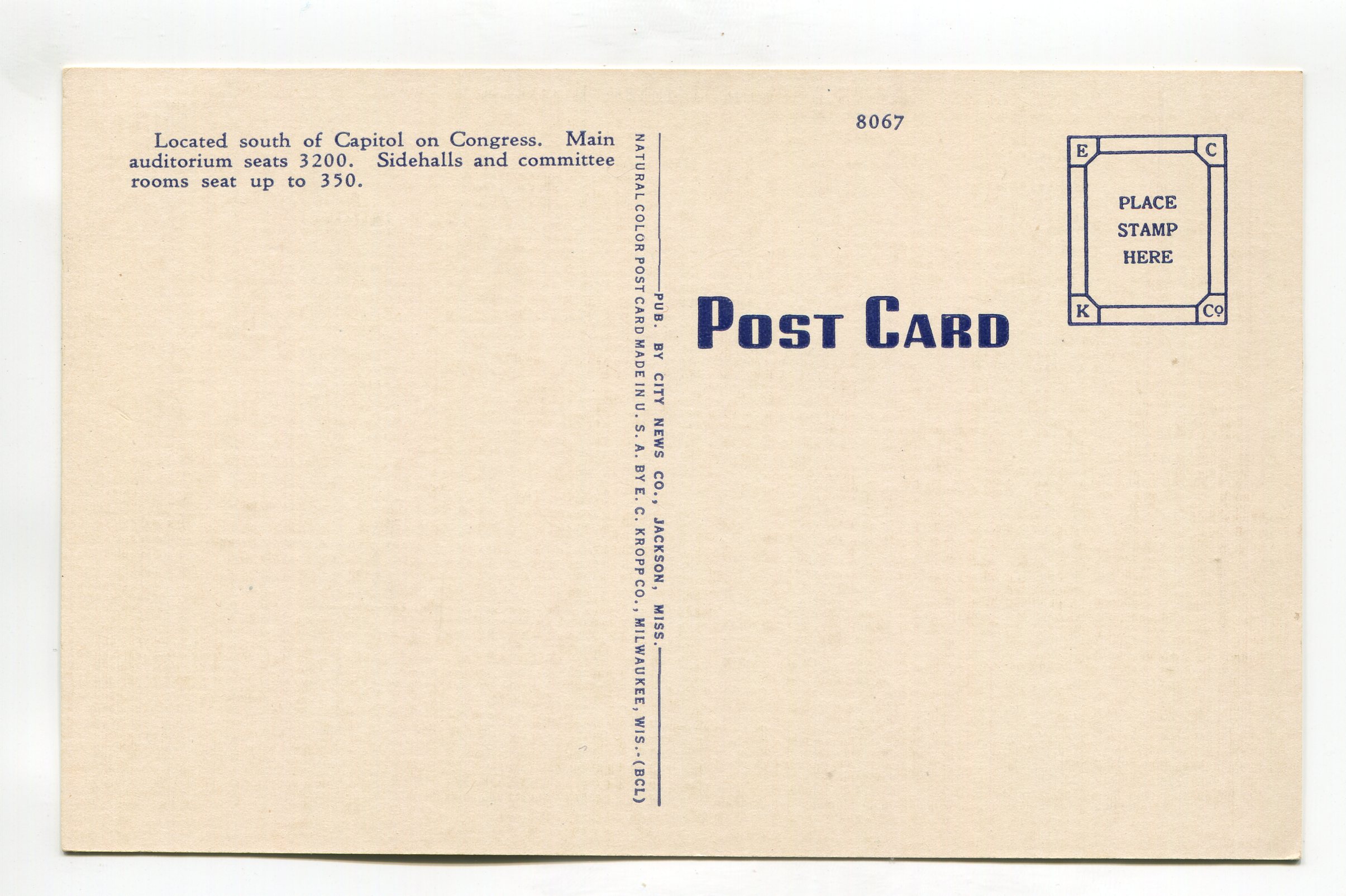 City Auditorium Jackson Mississippi postcard