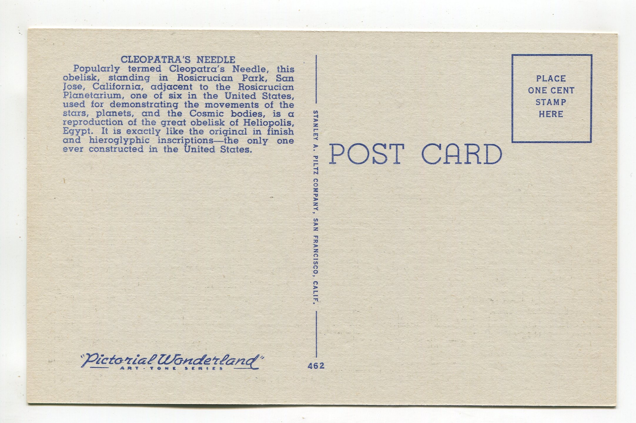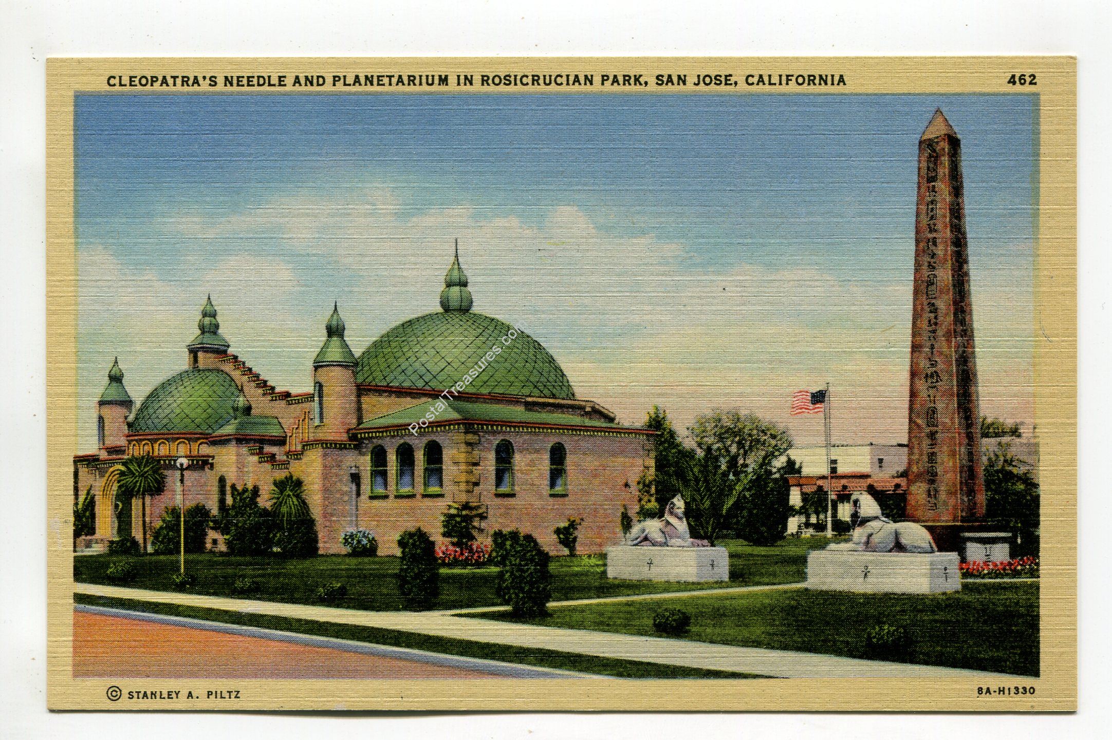Cleopatra’s Needle and Planetarium in Rosicrucian Park San Jose California postcard