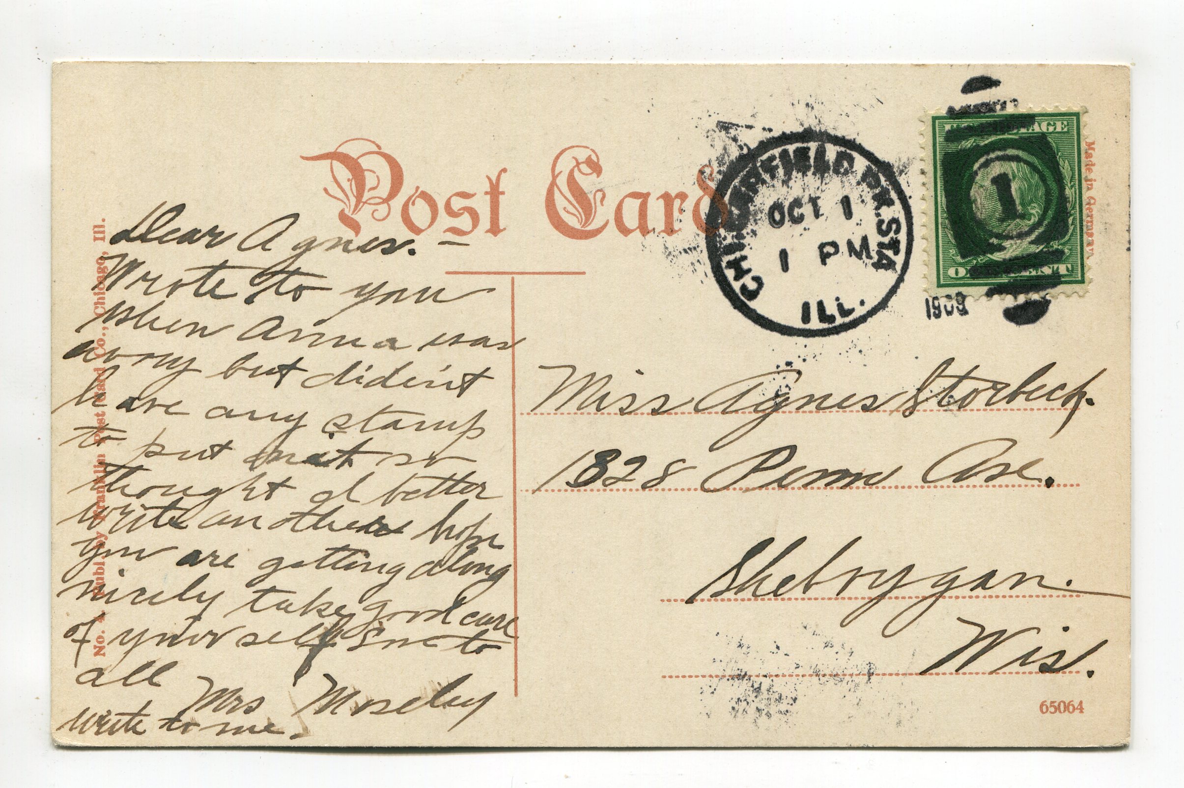 Condition – corner/edge wear, stain visible in upper left edge, cancellation mark on front, soiling/marks