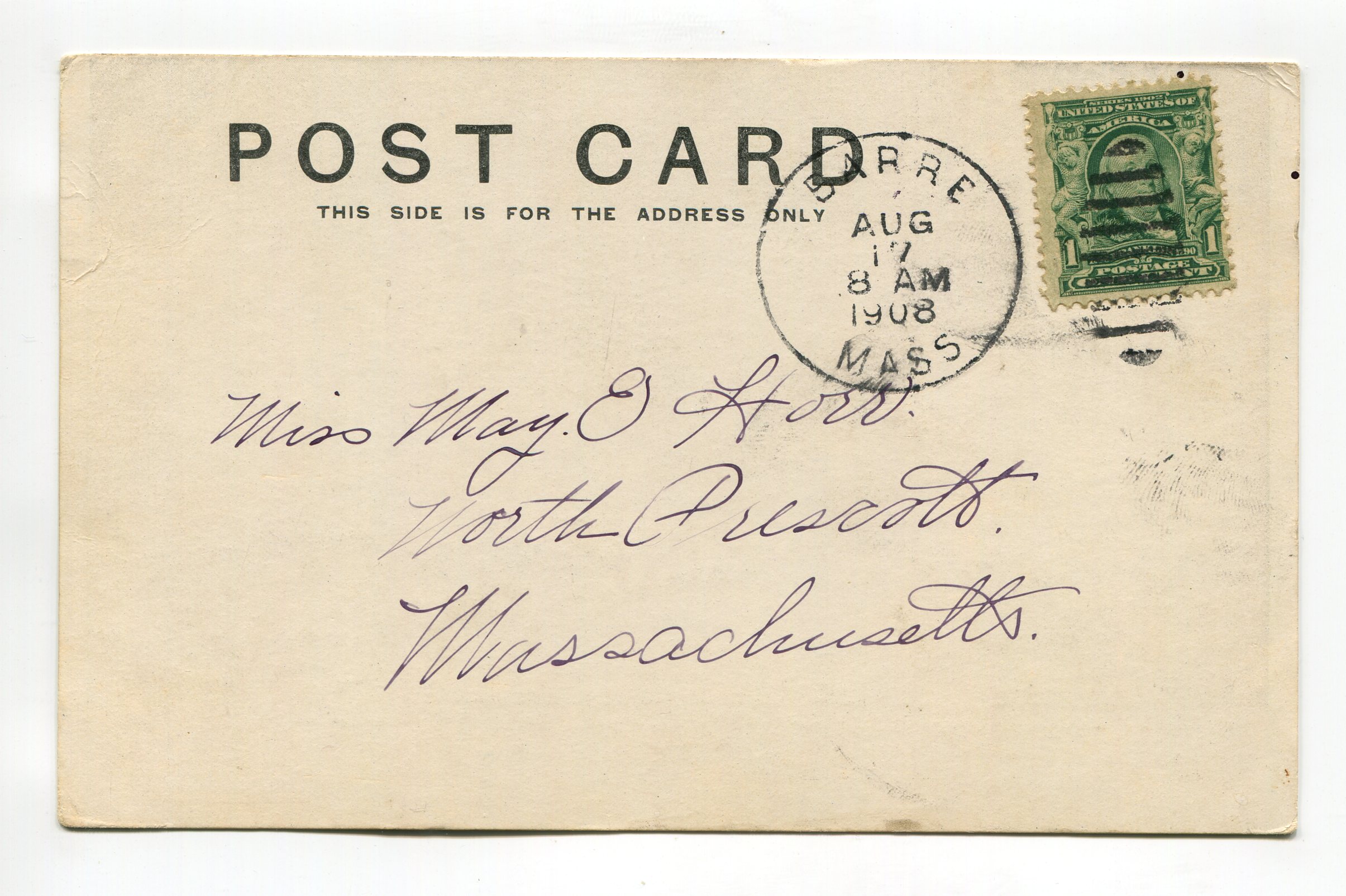 Condition – noticeable corner/edge wear, top right corner card front missing, crease in upper right edge, cancellation mark on front, album impression marks around corners, soiling/marks