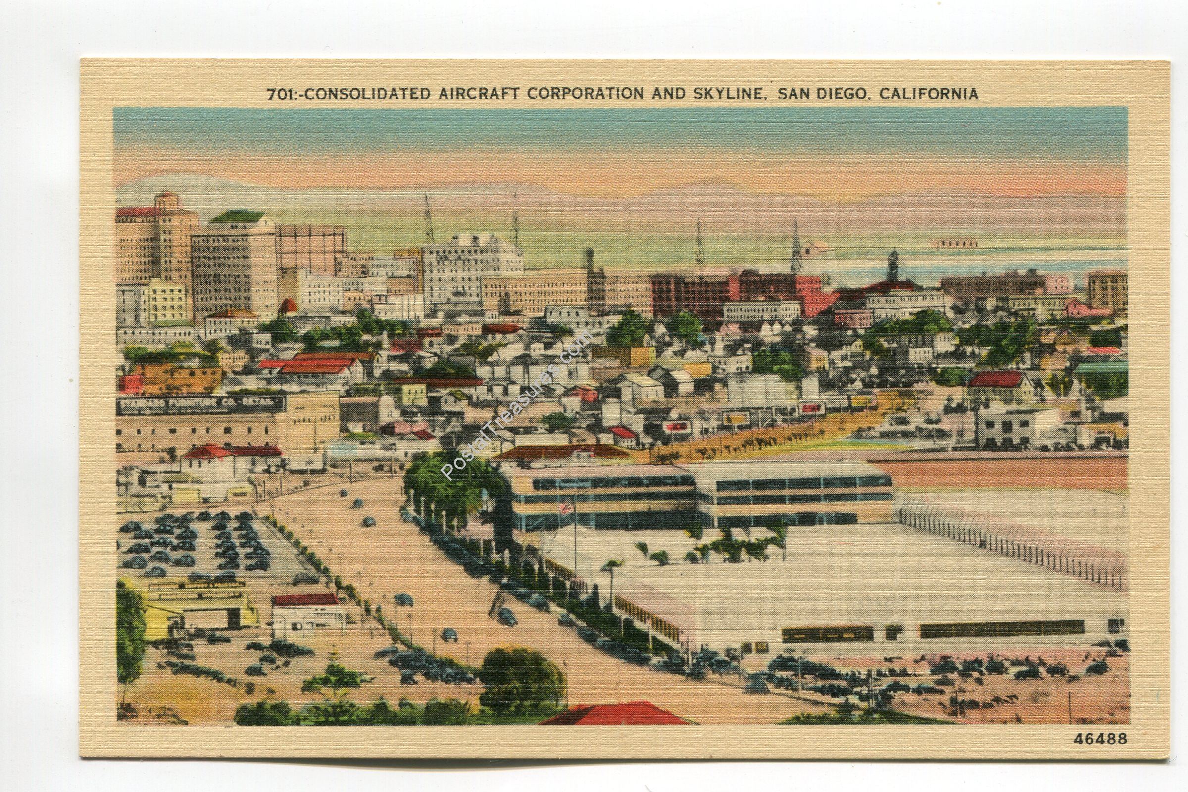 Consolidated Aircraft Corporation and Skyline San Diego California postcard