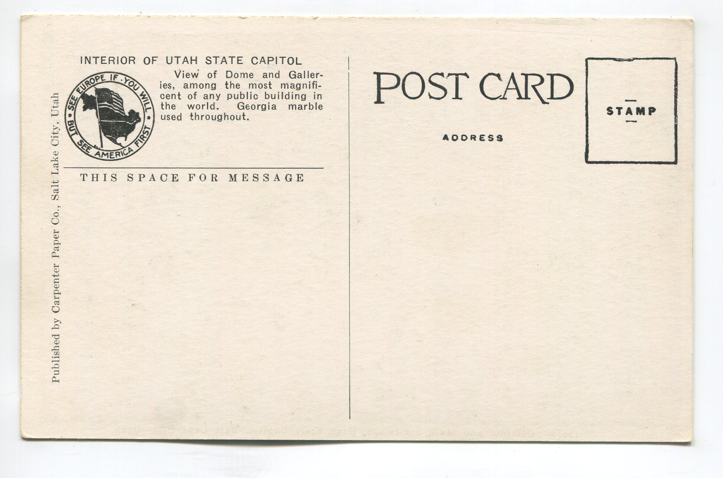 Corridor and Main Stairways Utah State Capitol Salt Lake City Utah postcard