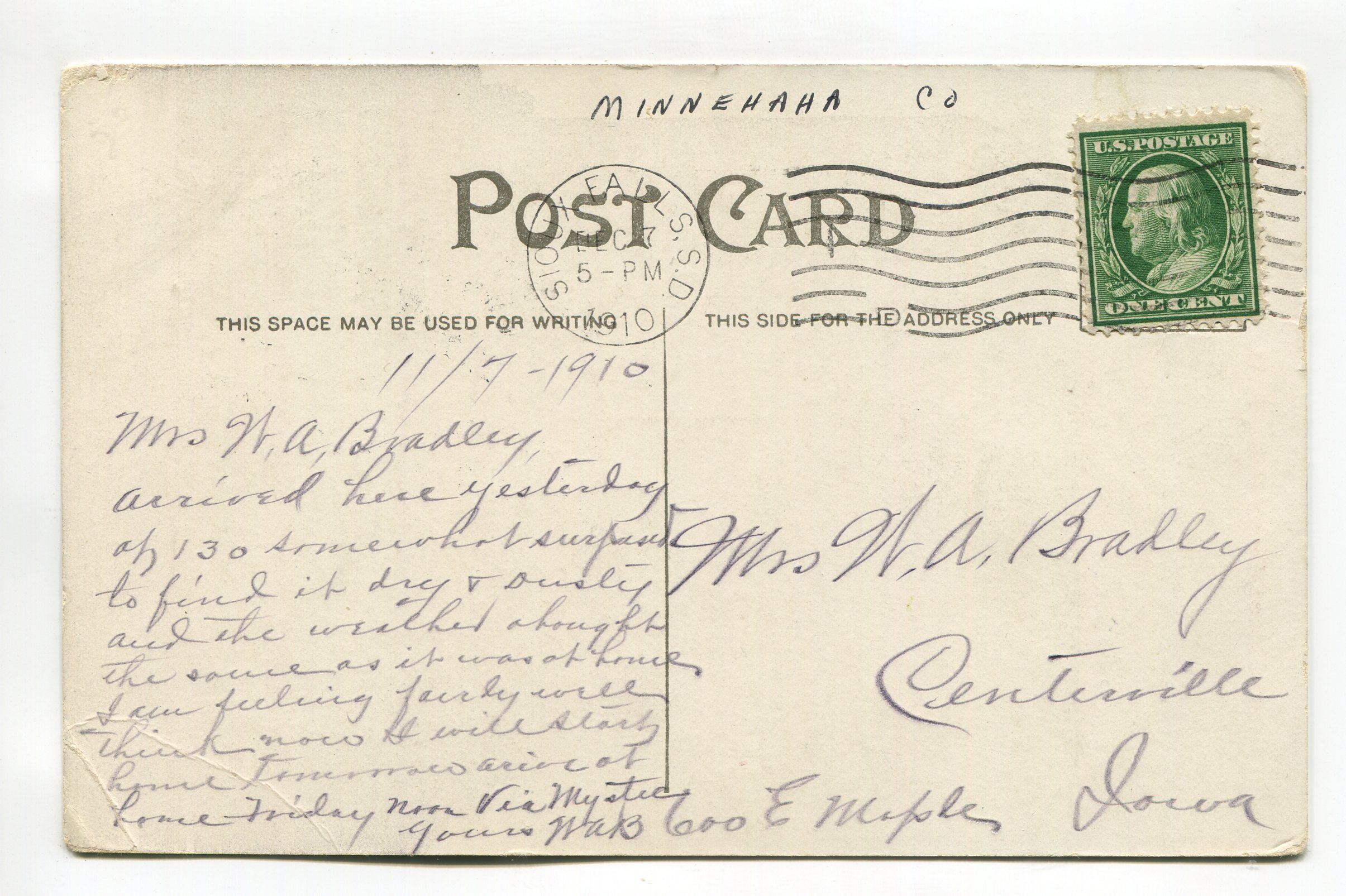 Condition – noticeable corner/edge wear, heavy creases bottom left corner, creases in all quarters and in top edge right of center, rear message impression visible on card front, soiling/marks