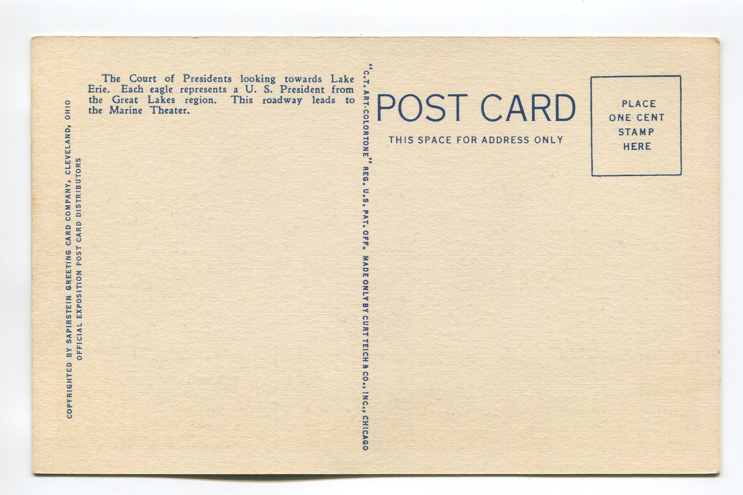 Court of Presidents looking towards Lake Erie Cleveland Ohio postcard