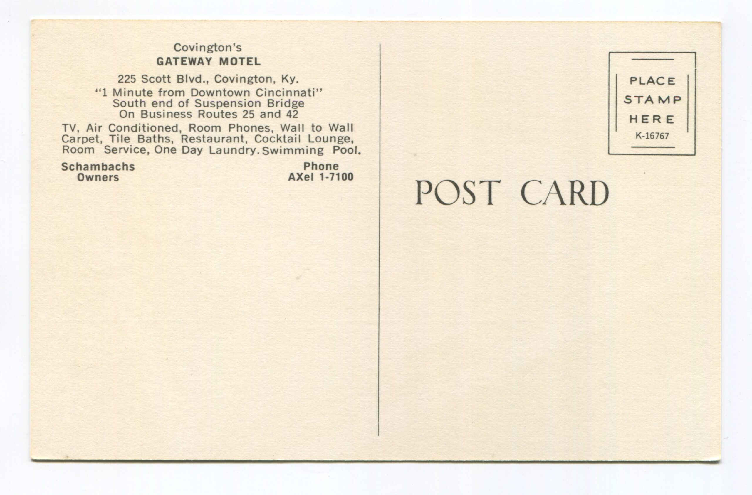 Covington’s Gateway Motel Covington Kentucky postcard