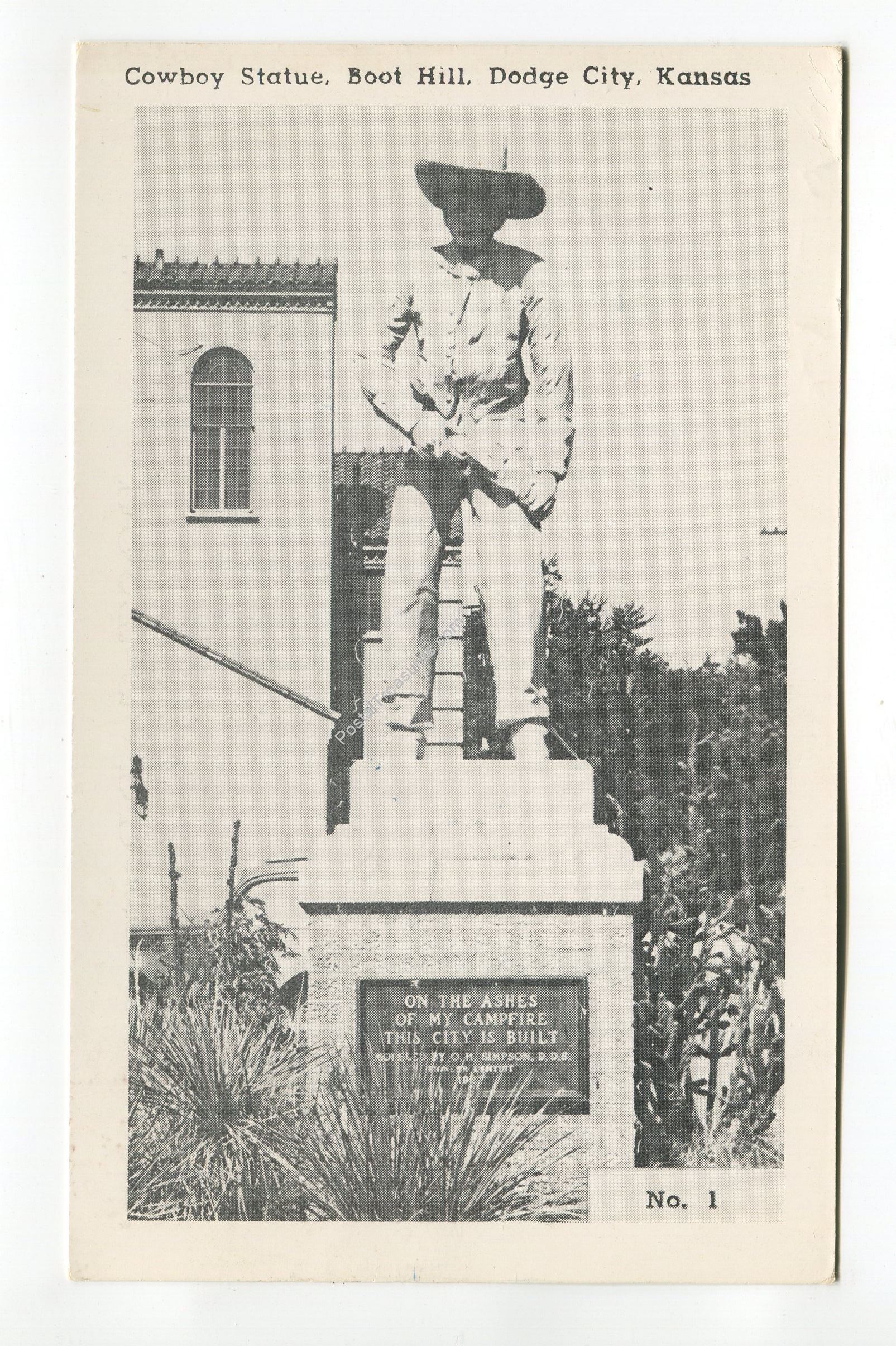 Cowboy Statue Boot Hill Dodge City Kansas postcard