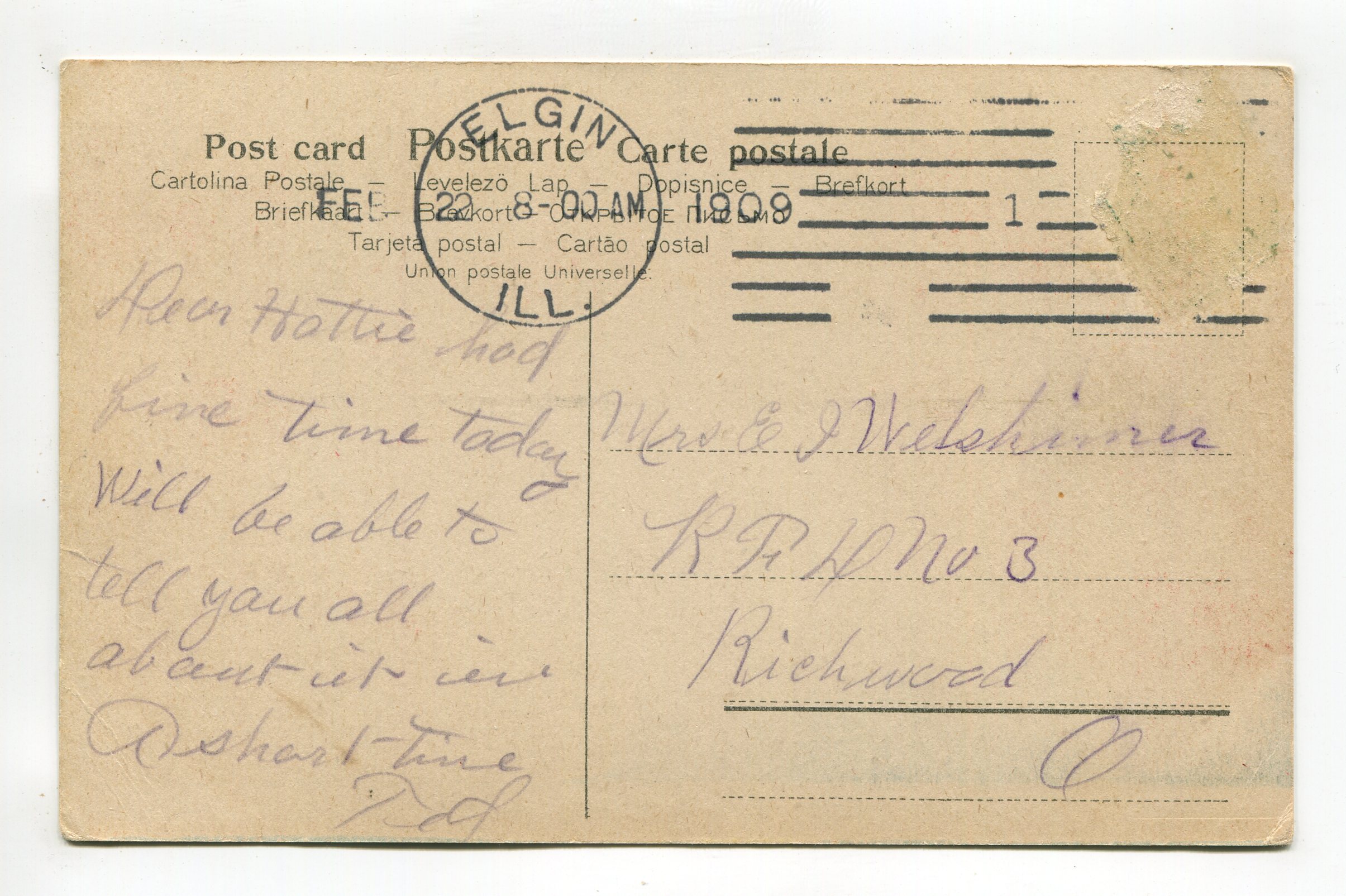 Postmark – 1909 – stamp missing
