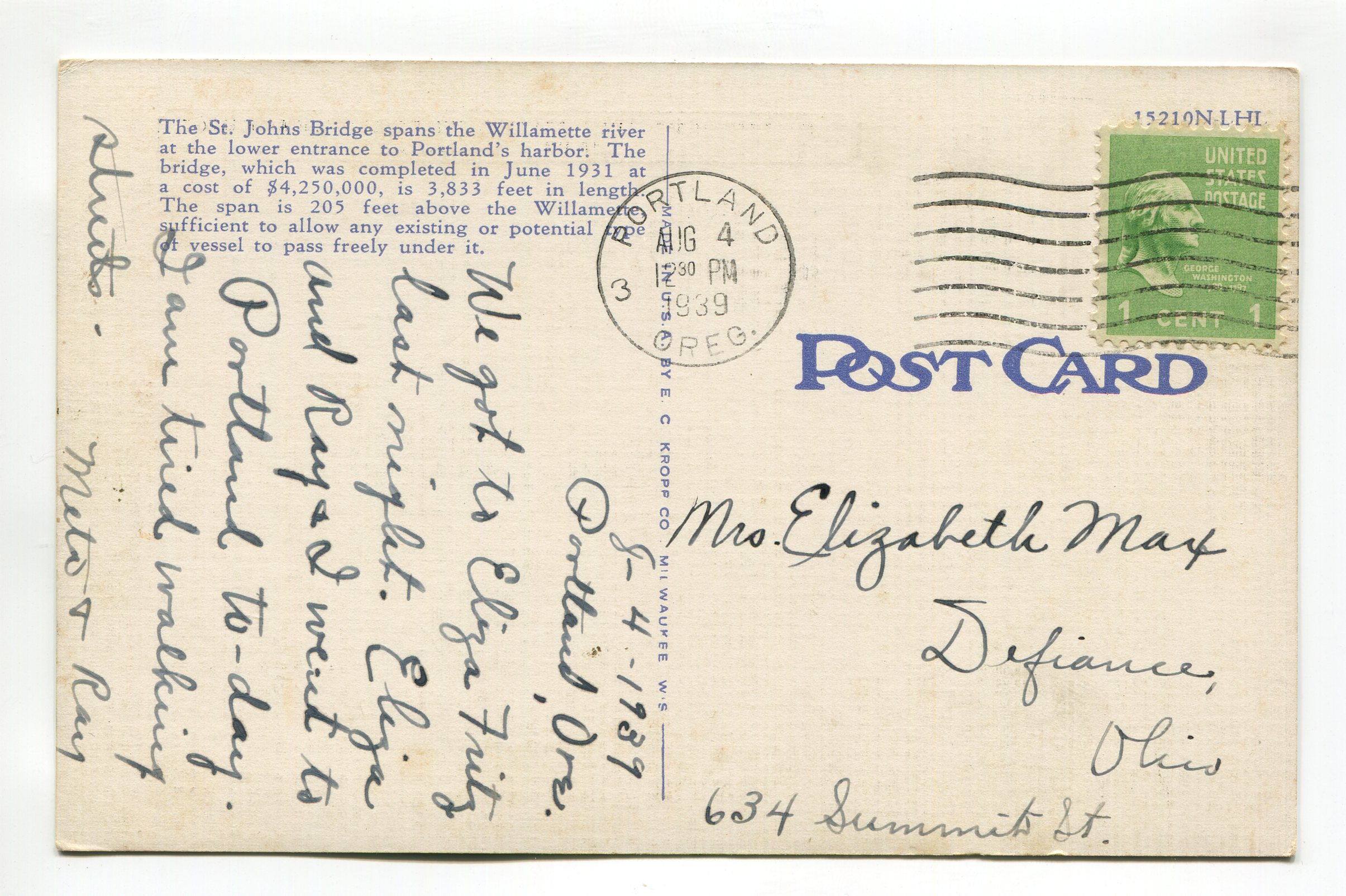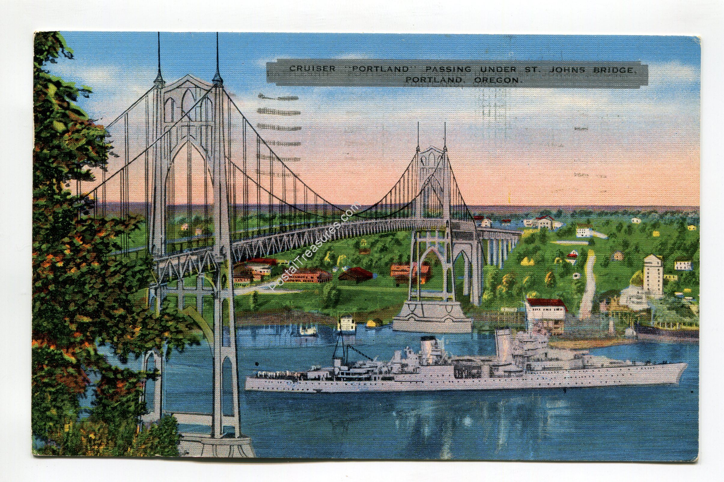 Cruiser Portland passing under St John’s Bridge Portland Oregon postcard