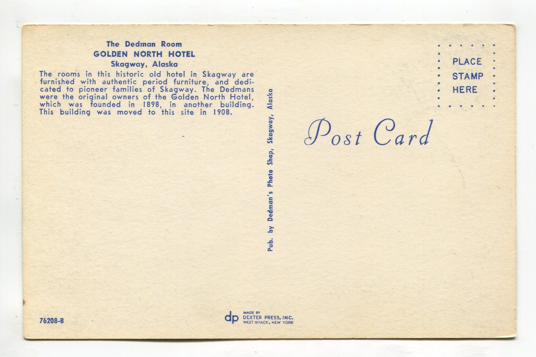 Dedman Room Golden North Hotel Skagway Alaska postcard