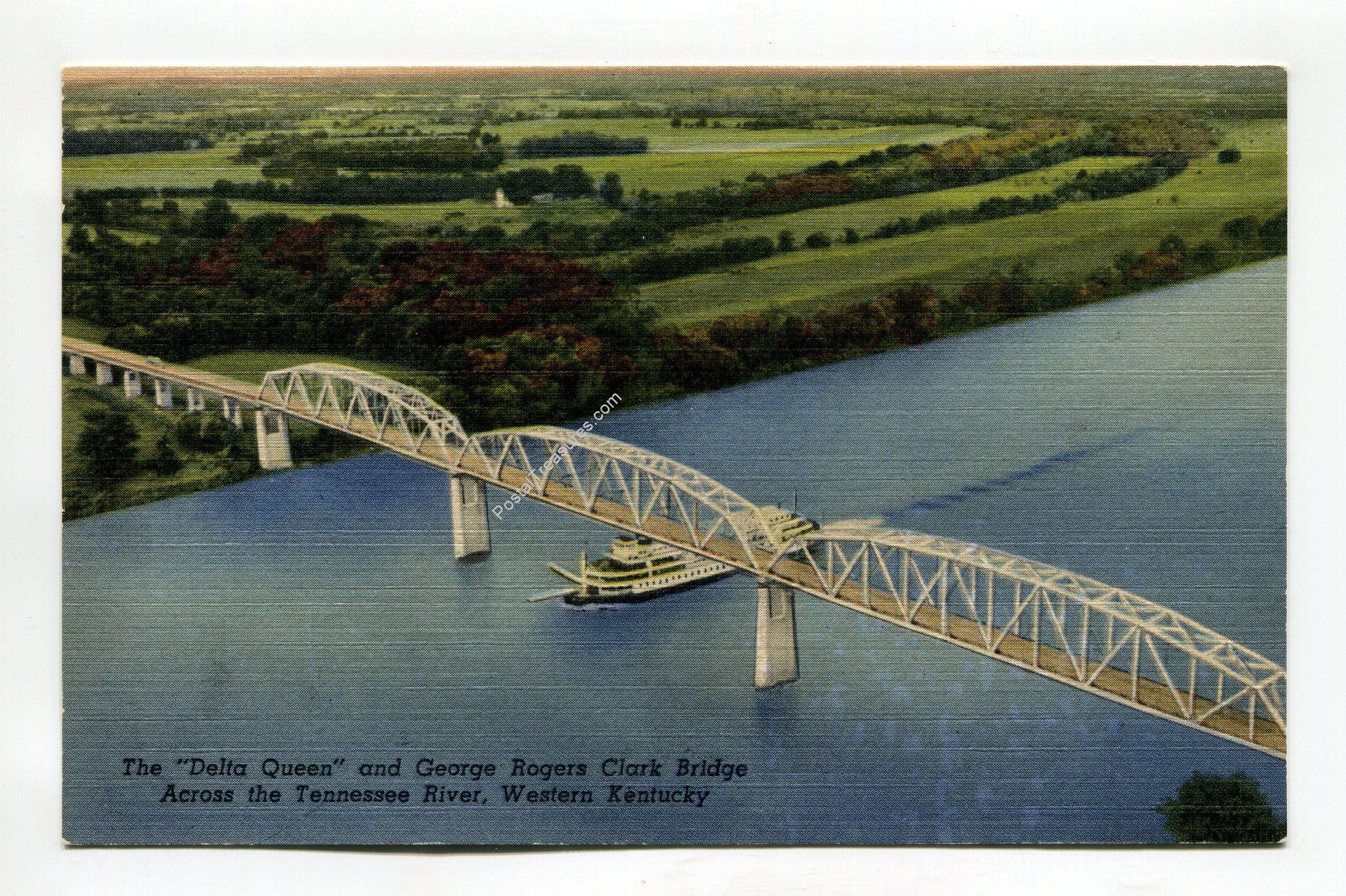 Delta Queen and George Rogers Clark Bridge across the Tennessee River Western Kentucky postcard