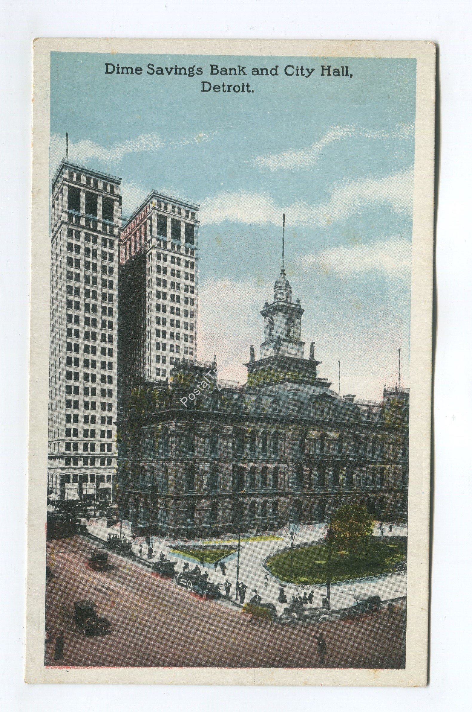 Dime Savings Bank and City Hall Detroit Michigan postcard