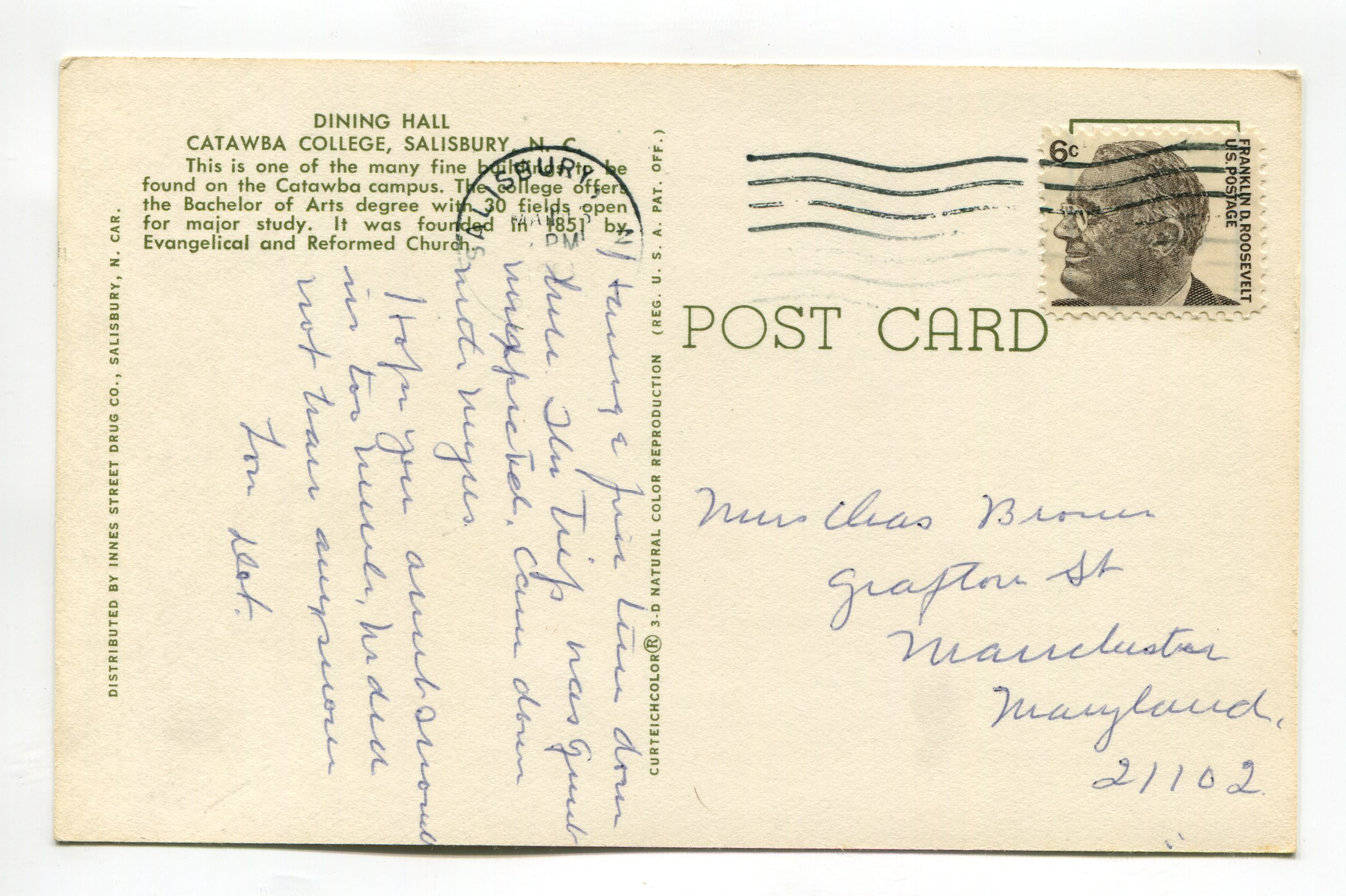 Dining Hall Catawba College Salisbury North Carolina postcard