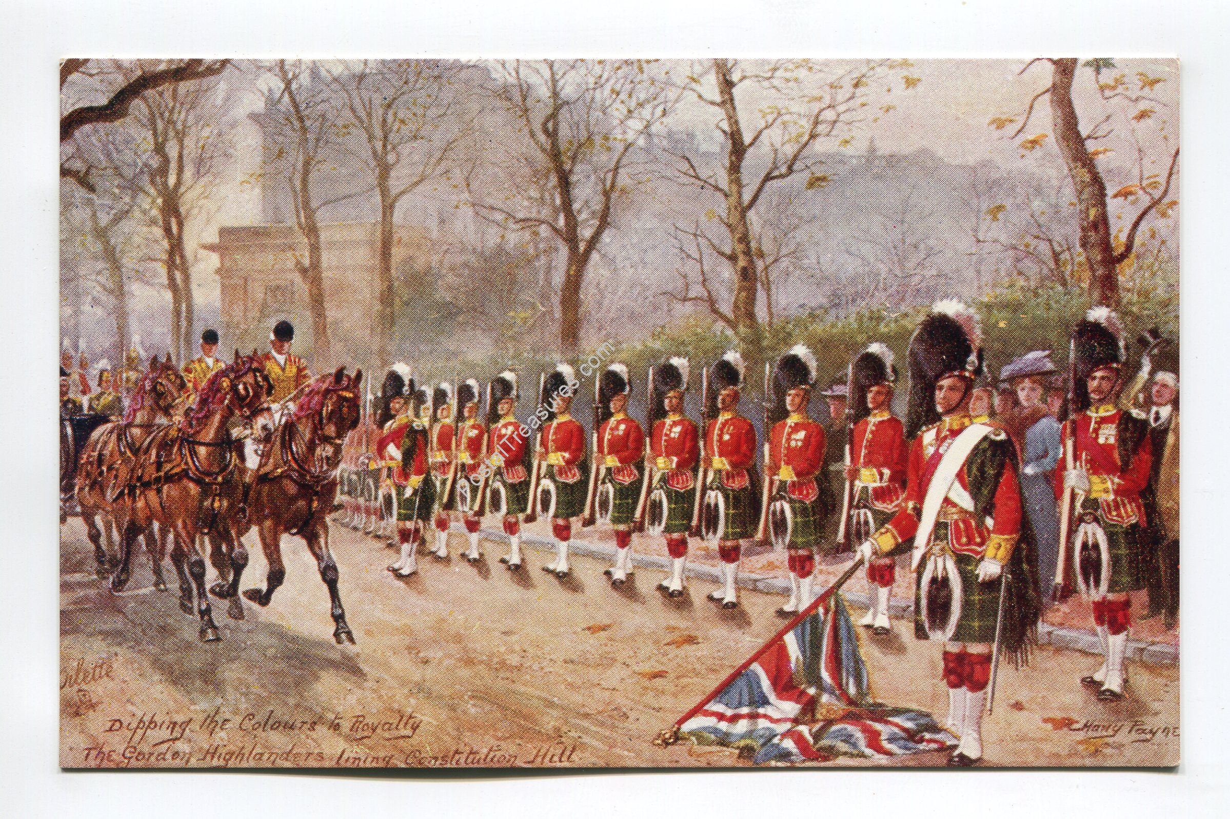 Dipping the Colours to Royalty The Gordon Highlanders lining Constitution Hill postcard